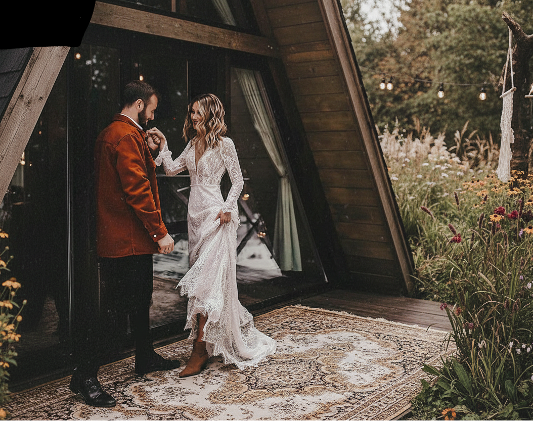 Lace Boho Wedding Dress Deep V Neck Open Back Long Sleeve Bridal Gown, this enchanting boho bridal gown celebrates romance through intricate floral lace and thoughtful design details. Long illusion sleeves frame a flattering V neckline, while the fitted bodice flows into a graceful A-line silhouette with sweep train. The showstopping open keyhole back adds allure with delicate straps anchoring the waist and a discreet zipper closure. Slim-fitting through the bodice and romantic throughout, this dress captures the essence of bohemian elegance for the adventurous bride ready to make her mark.