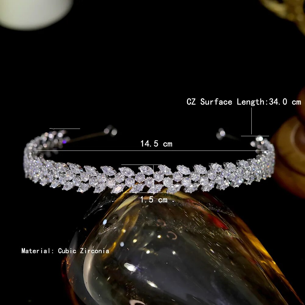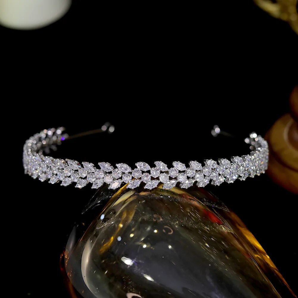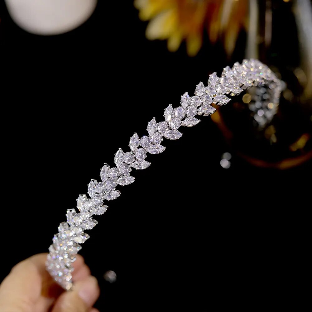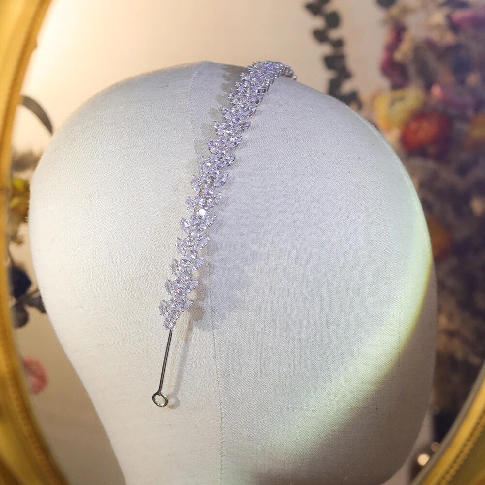 Bridal Headpiece Cubic Zirconia Crystal Wedding Crown Headband, Transform into a breathtaking bridal crown, this headband features delicate cubic zirconia leaves that exude elegance and grace on your special day.