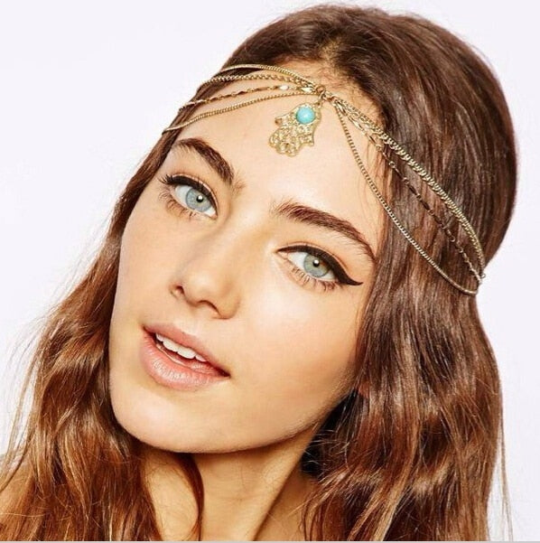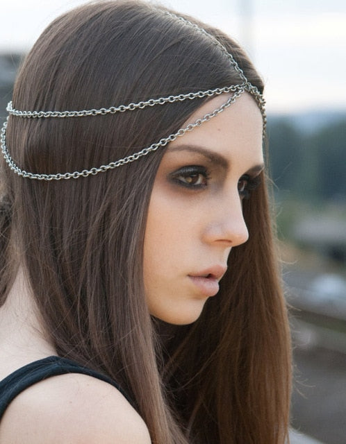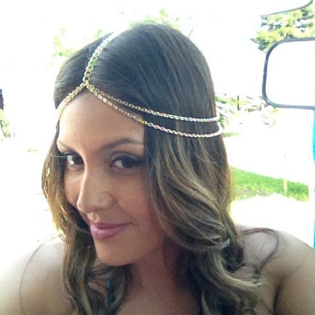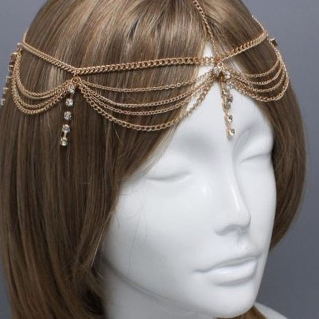 Bridal Headpiece Boho Draping Crystal Wedding Hair Accessory, Indulge in a range of elegant and stylish boho bridal head chains, perfect for a Summer outdoor party or wedding event.