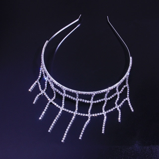 Bridal Headpiece Layered Crystal Head Chain Jewelry Hair Accessory, Don't miss out on the stunning geometric pattern of this head jewel chain, made with silver and gold and adorned with sparkling individual crystal rhinestones on delicate forehead chains!