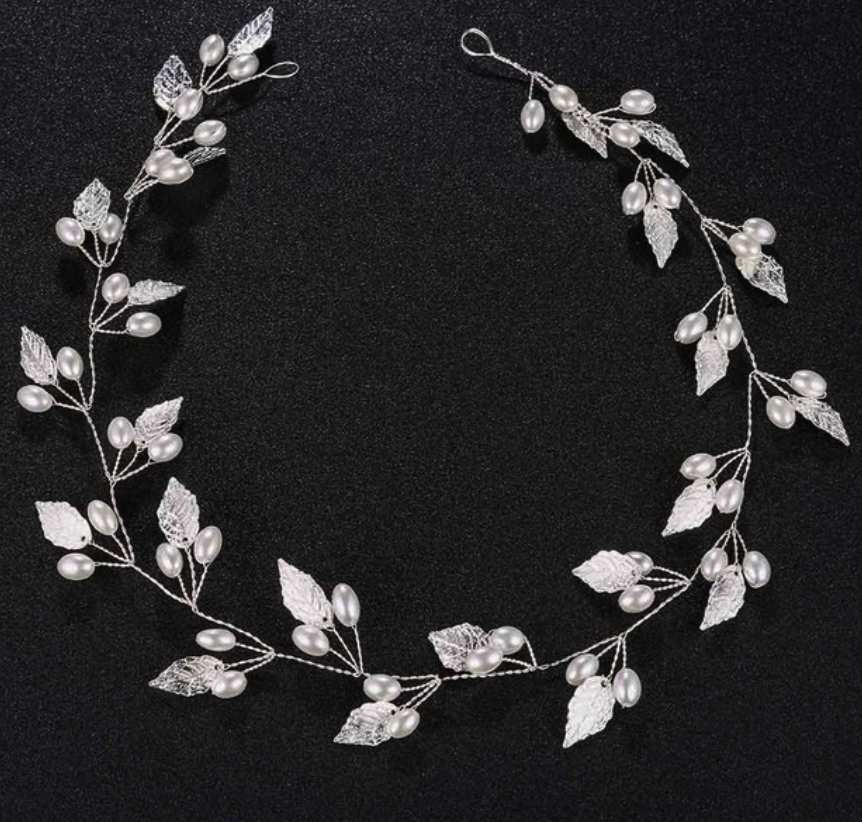 Bridal Headpiece Wedding Hair Headband Tiara, Elevate your bridal look with our Leaf Hair Jewelry Pearl Tiara Headband! This elegant headpiece features delicate golden or silver leaves adorned with luminous white pearls. The malleable wire allows you to shape it to your liking, and the looped ends make it easy to attach a ribbon for a romantic touch. Perfect for a stunning and unique wedding accessory!
