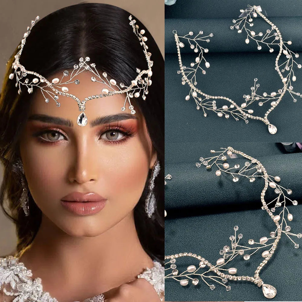 Wedding Hair Accessory Forehead Headband Crystal Bridal Tiara