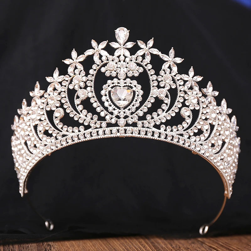 Wedding Tiara Crown Crystal Bridal Hair Accessory, This Elegant Princess Crown features a stunning waterdrop heart crystal centerpiece, surrounded by delicate floral accents. Crafted on a sturdy metal frame, it includes a crystal-lined bottom rim for added sparkle. Designed with loop ends, it easily secures a veil, making it perfect for weddings, pageants, and special events. Its vibrant crystals add a colorful touch, elevating any formal look with refined sophistication.