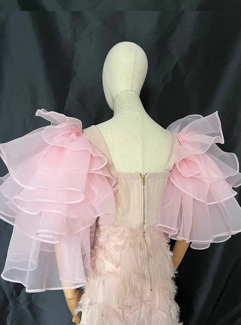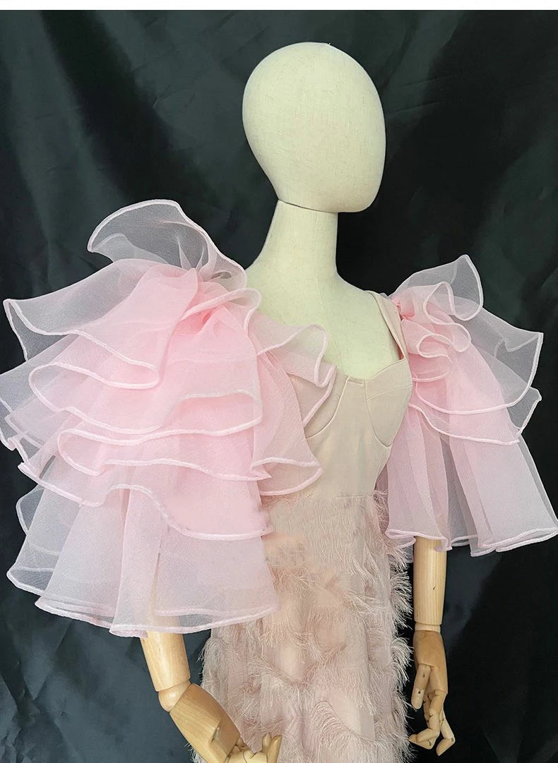 Detachable Sleeves Layered Ruffles 1 Pair, Enhance your bridal look for your special day with these elegant detachable sleeves. Crafted with layered ruffles and attached at the shoulders, these elbow-length sleeves add a touch of sophistication and style to your attire.