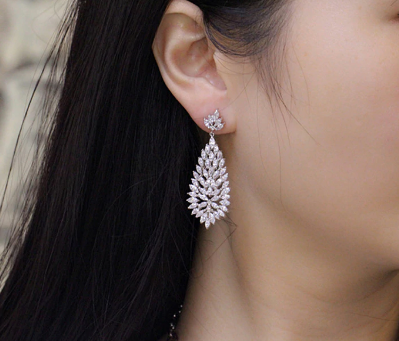 Cubic Zirconia Wedding Earrings Fashion Bridal Jewelry Accessory, sparkling dangle drop crystal earrings for special events, a radiance from these fine cubic zirconia earrings for pierced ears will delight and add to your evenings attire.