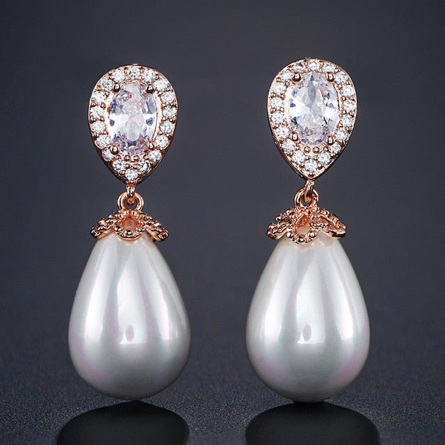 Pearl Cubic Zirconia Crystal Wedding Earrings Jewelry Accessory