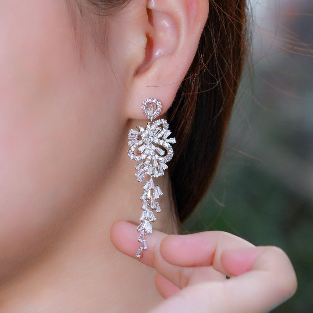 Wedding Tassel Earrings Cubic Zirconia Long Bridal Jewelry Accessory