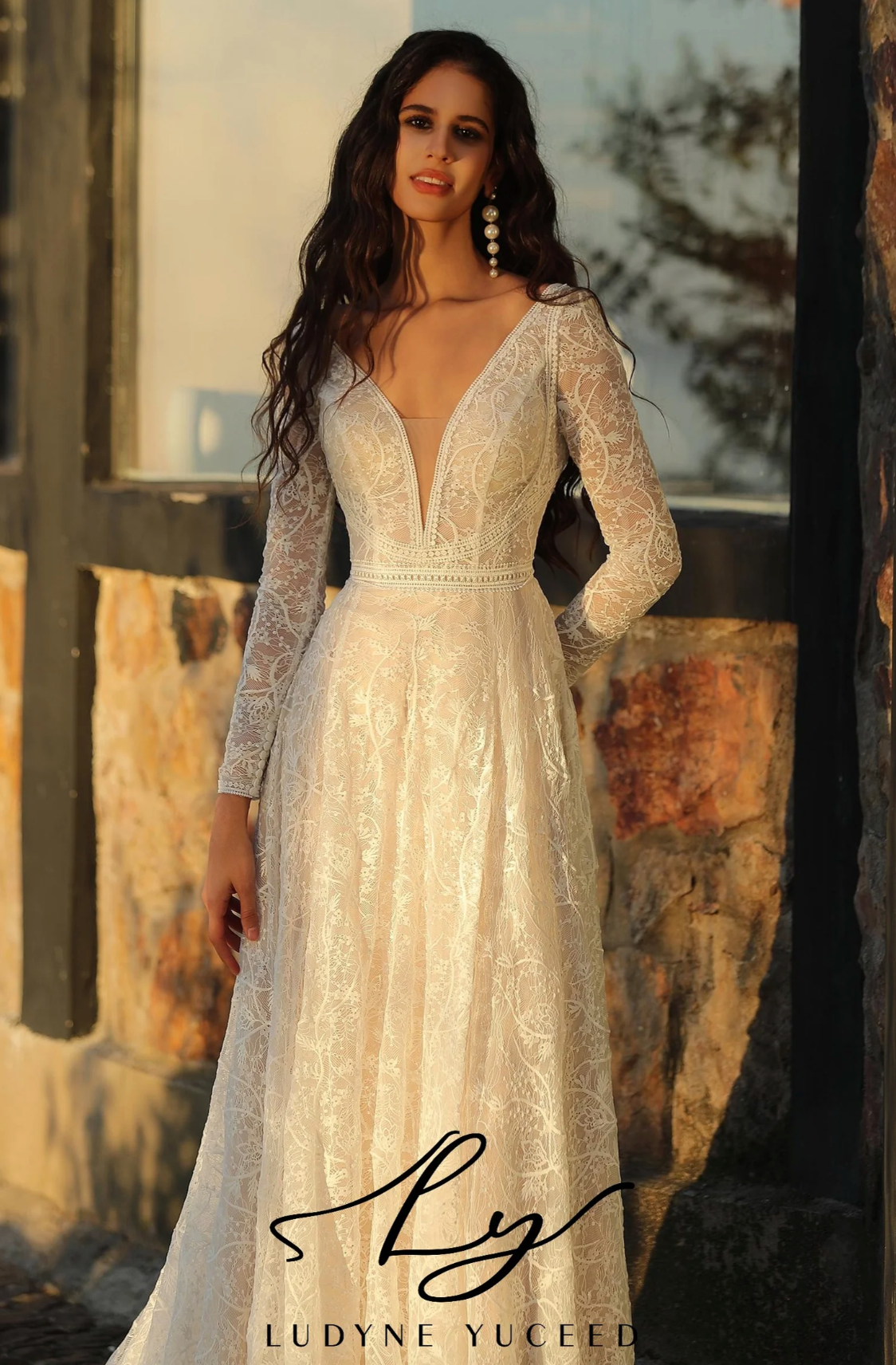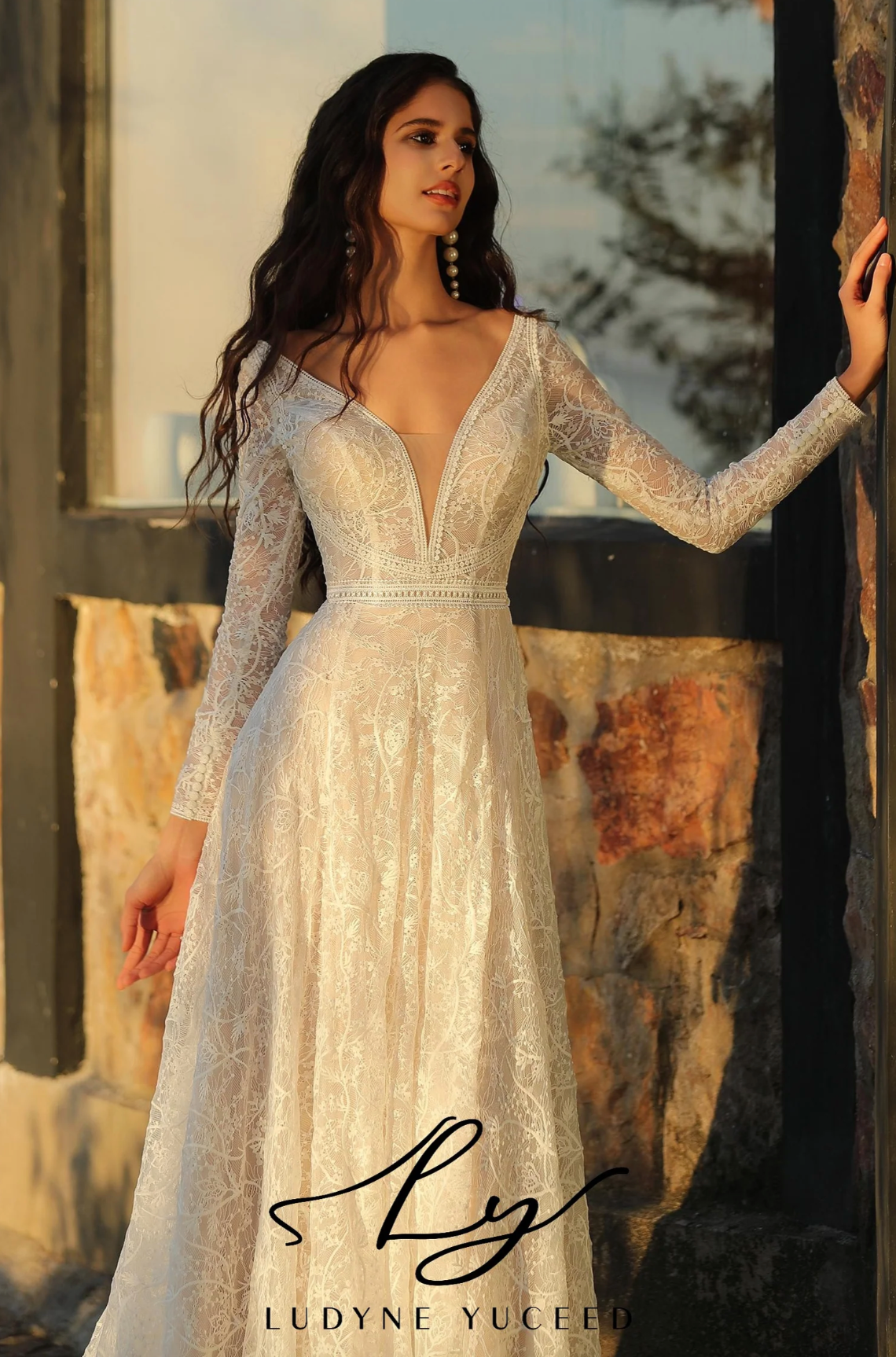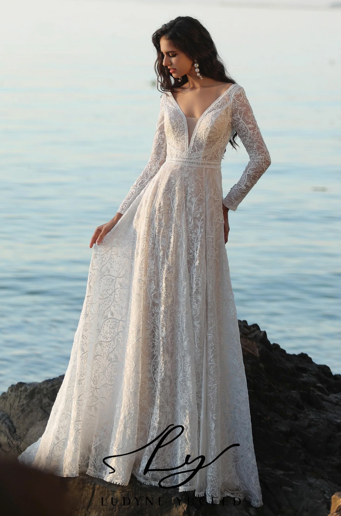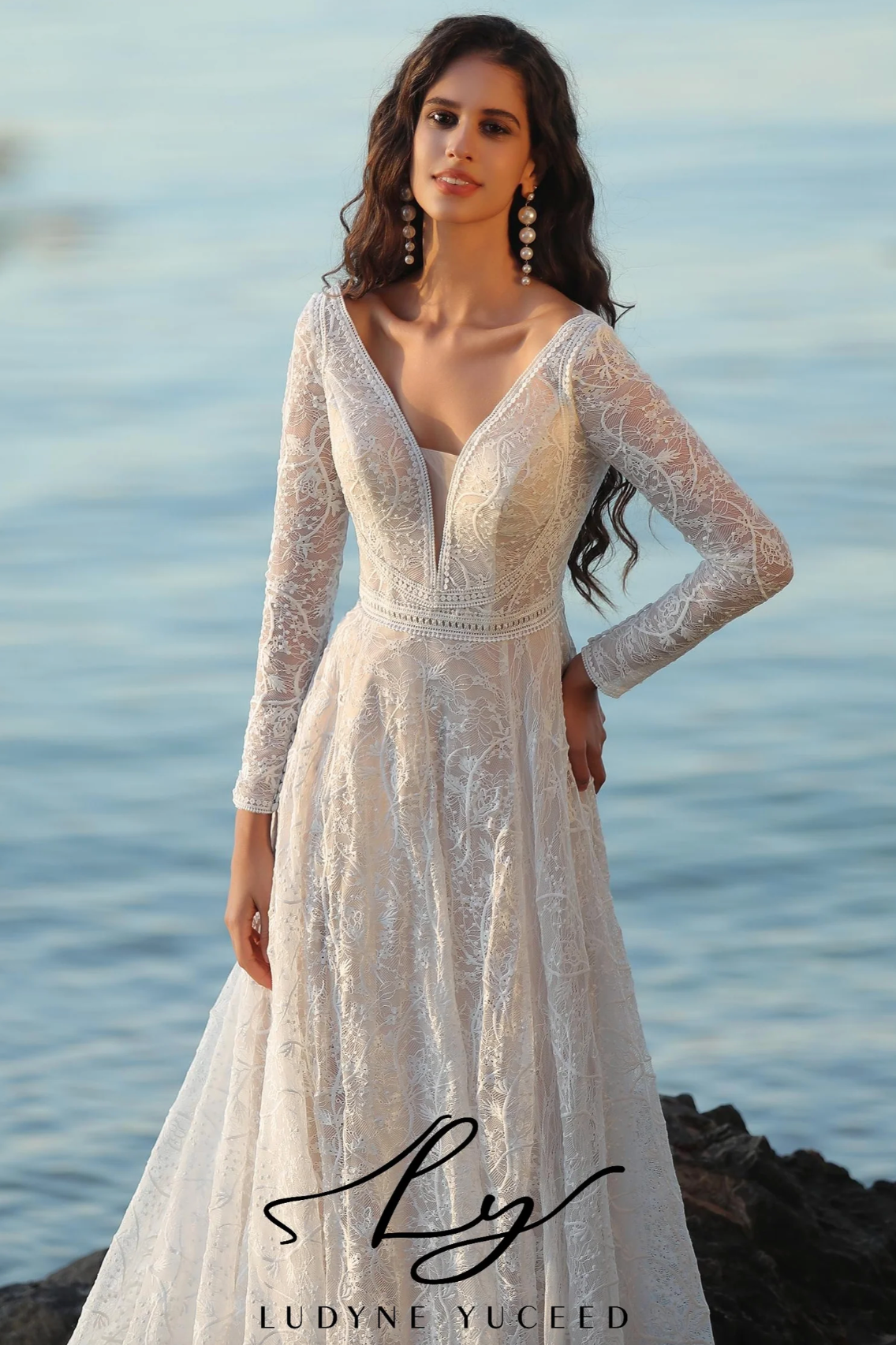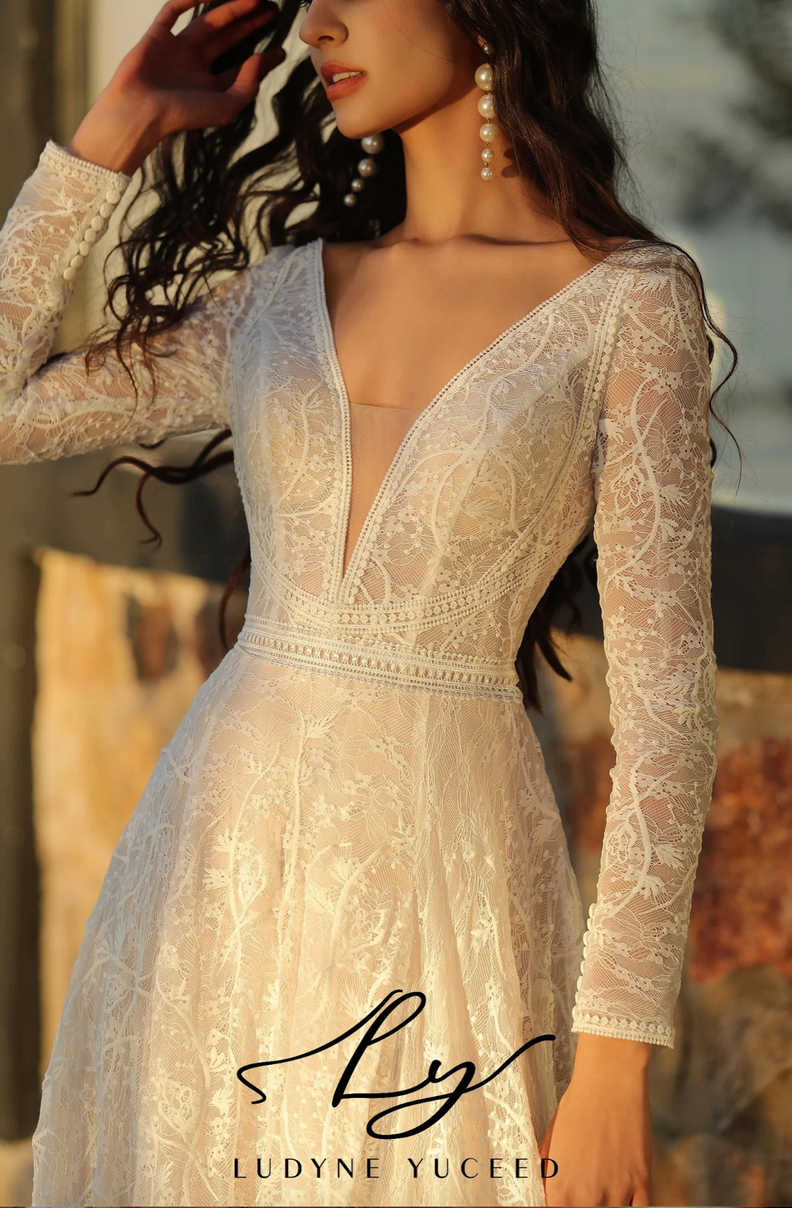 Wedding Dress Boho A-Line V Neck Lace Long Sleeve Bridal Gown, This long-sleeved wedding dress captures boho elegance with its refined design. It showcases a deep V-neckline that offers a sophisticated and captivating appeal. Crafted entirely from delicate lace, the gown exudes a romantic, vintage charm. Lace trim accents the neckline and skirt hem, adding subtle detail, while the illusion back with button closure enhances its polished look. The soft A-line skirt flows gracefully, perfectly embodying the boho spirit with a touch of sophistication.