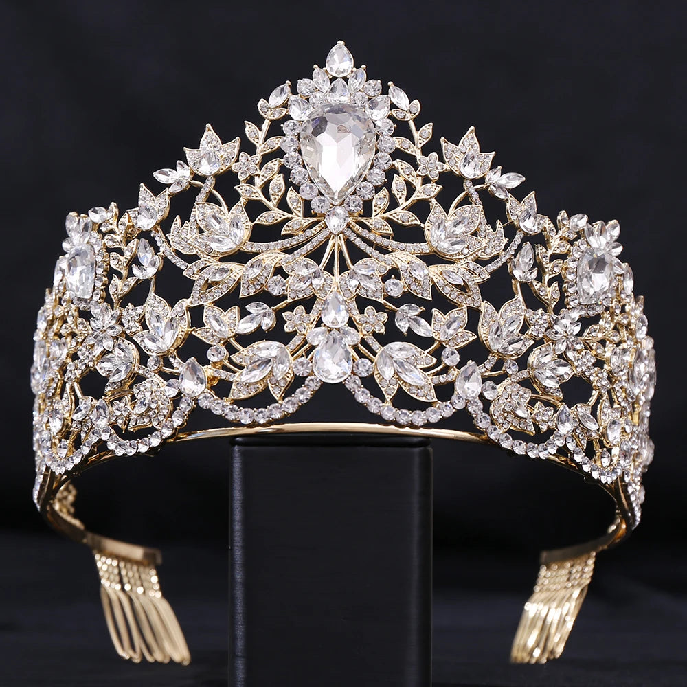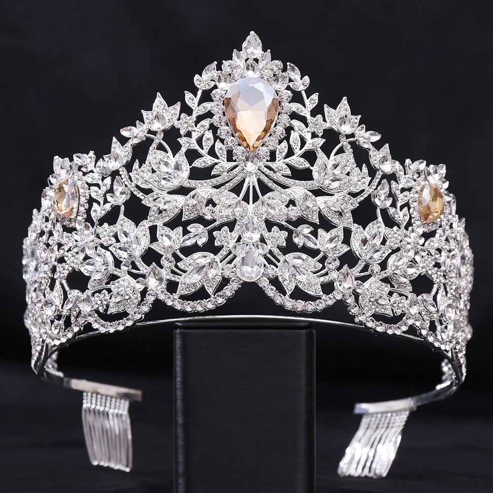 Crystal Rhinestone Pageant Crown Contestant Winners Tiara, This distinguished pageant crown commands presence with its elevated silhouette and striking teardrop centerpiece. Meticulously crafted with an array of finely cut crystals, each facet catches and reflects light with brilliant precision. The soaring high point creates an unmistakably regal profile, perfect for contestants who demand elegance and impact. A timeless choice for those who understand that true beauty deserves a crown worthy of her grace.