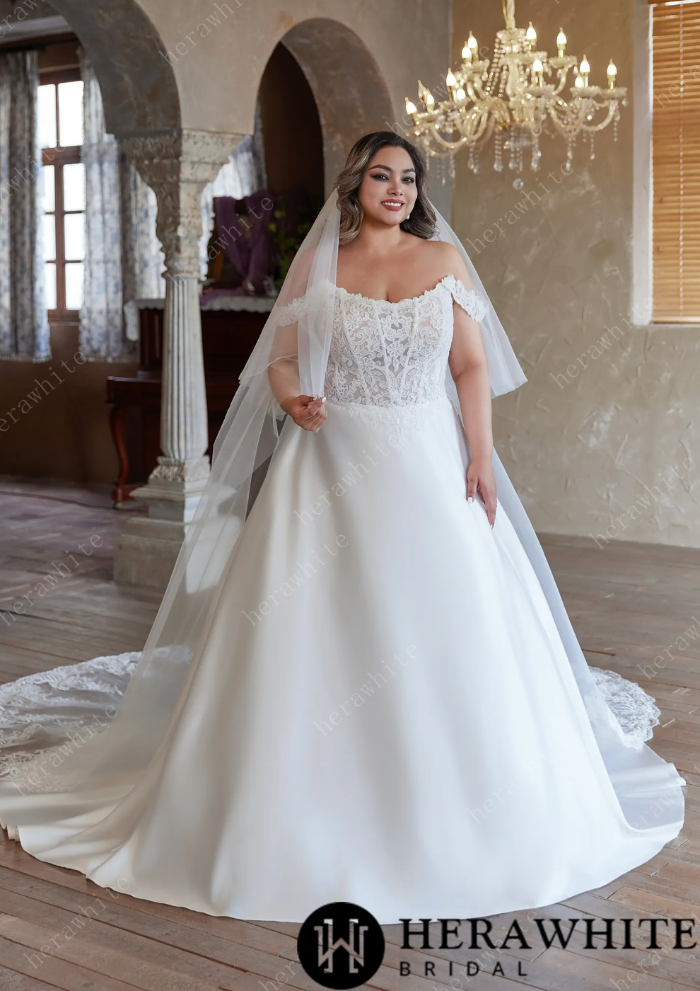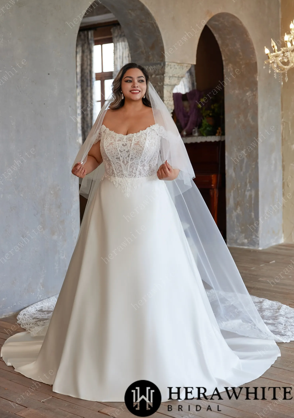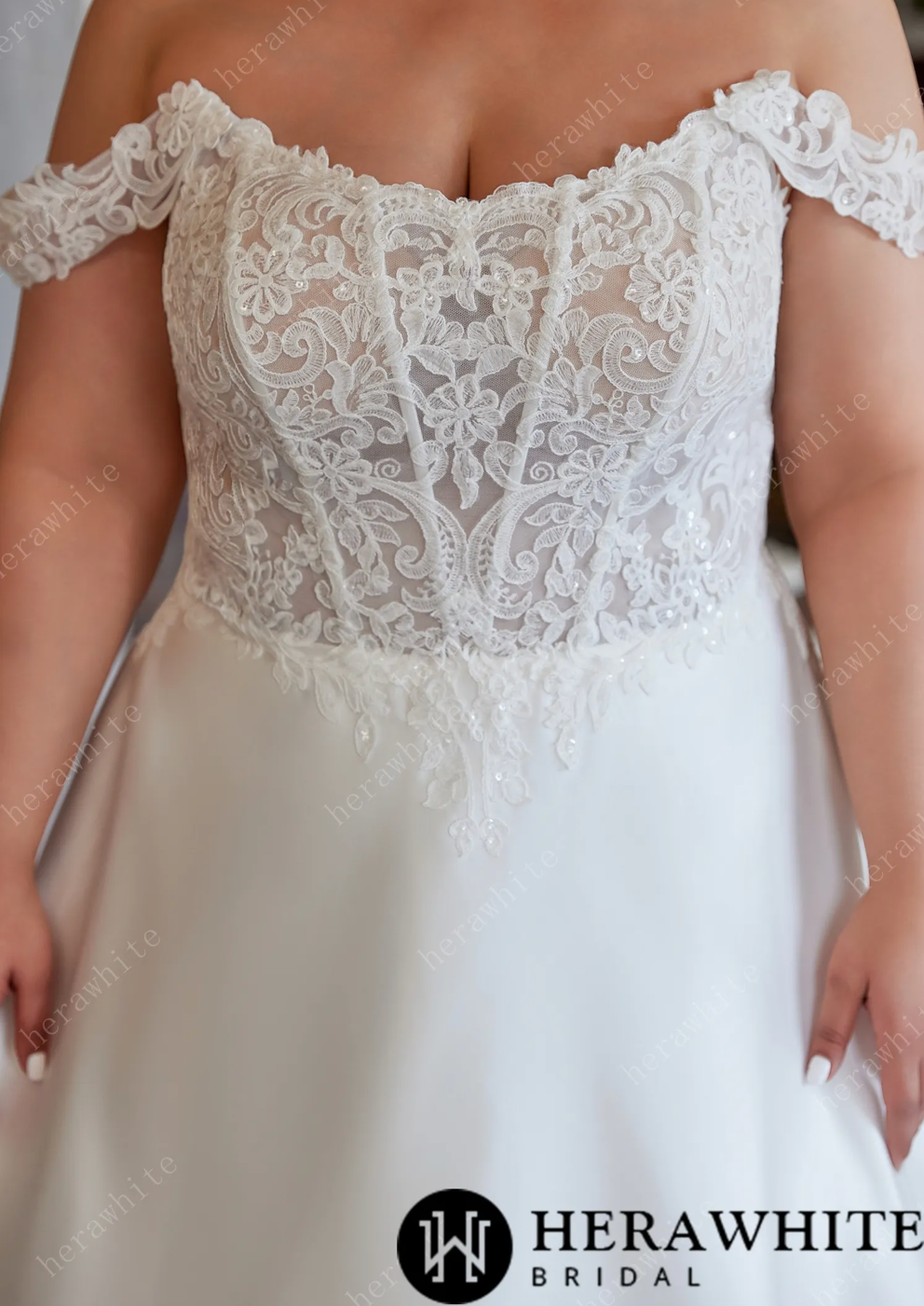 Plus Size Wedding Dress Satin A Line with Lace, this plus-size wedding dress is a dreamy blend of romance and elegance. The scoop neckline compared with off shoulder straps, adorned with intricate lace, frames your shoulders beautifully, while the sheer lace bodice adds a hint of delicate allure. The lace is arranged in a V-shape at the waist, which makes the waist visually tighter and more slimming.The flowing satin skirt creates a regal silhouette, and pairing it with a veil (optional) completes the timeless bridal look. It’s designed to celebrate every curve, making you feel like the most radiant bride on your special day.