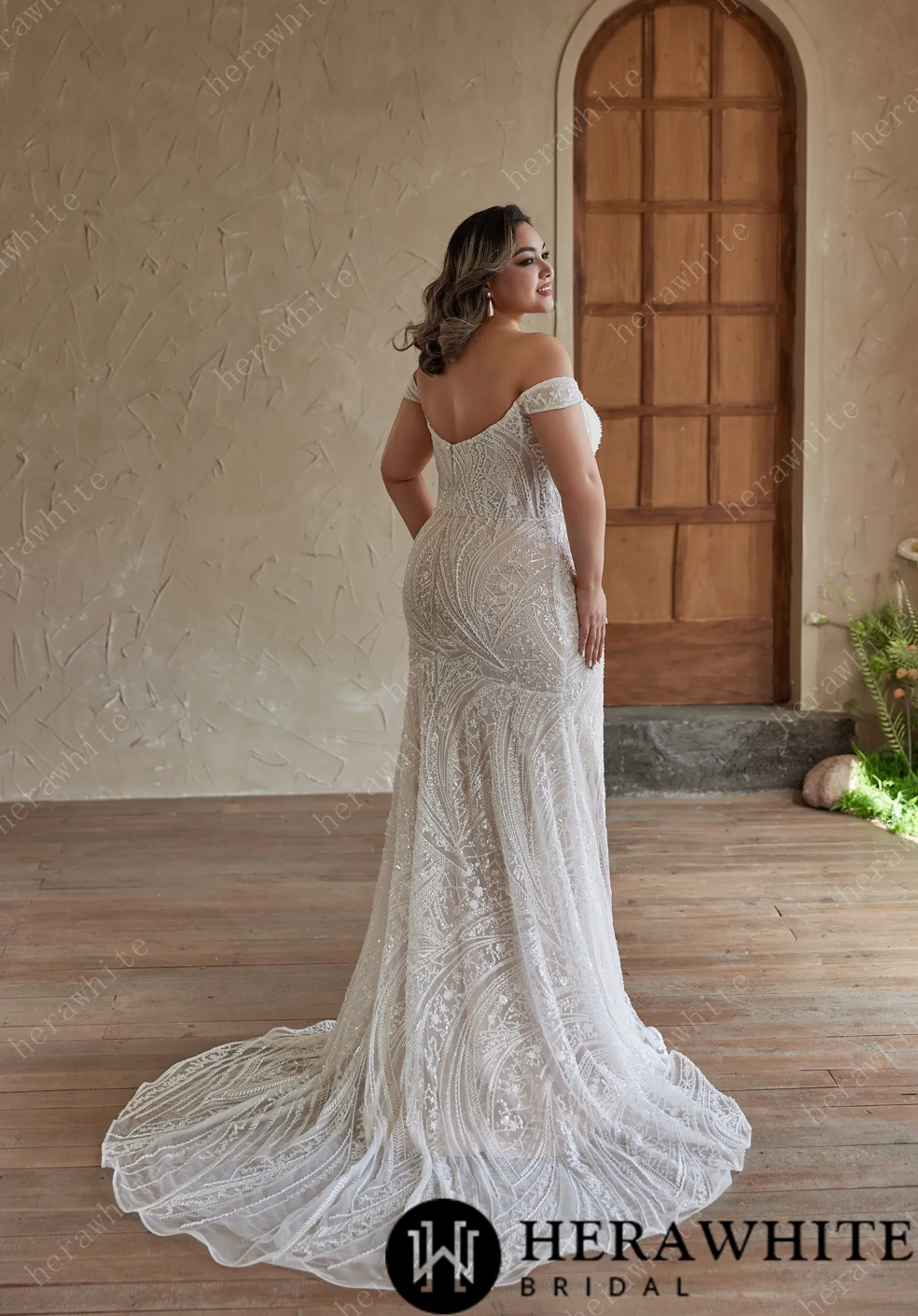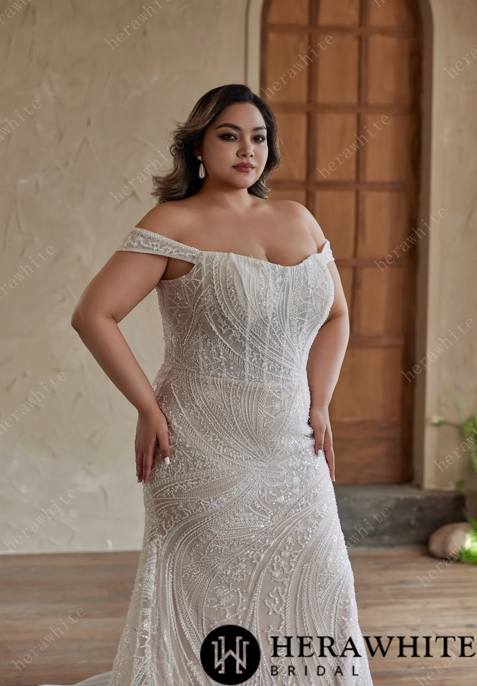 Plus Size Wedding Dress Strapless Beaded Embroidered Gown, has a romantic, elegant touch, complementing the neckline. The mermaid skirt embraces your figure, adorned with intricate, swirling beadwork and delicate lace that create a captivating, dimensional pattern. Ideal for brides seeking timeless allure, this gown ensures you’ll radiate confidence and charm as you walk down the aisle.