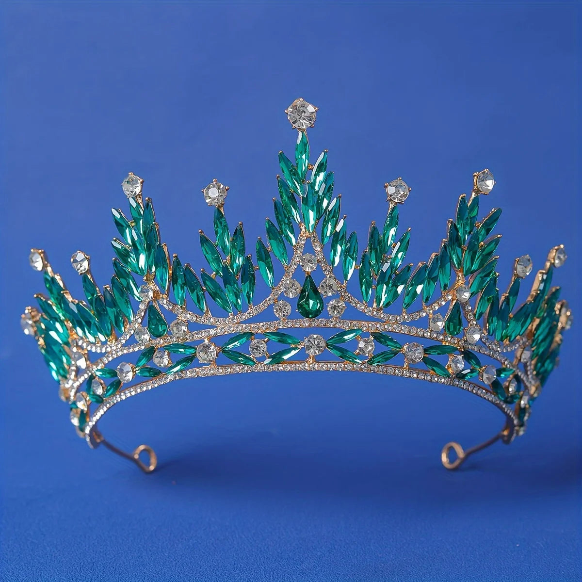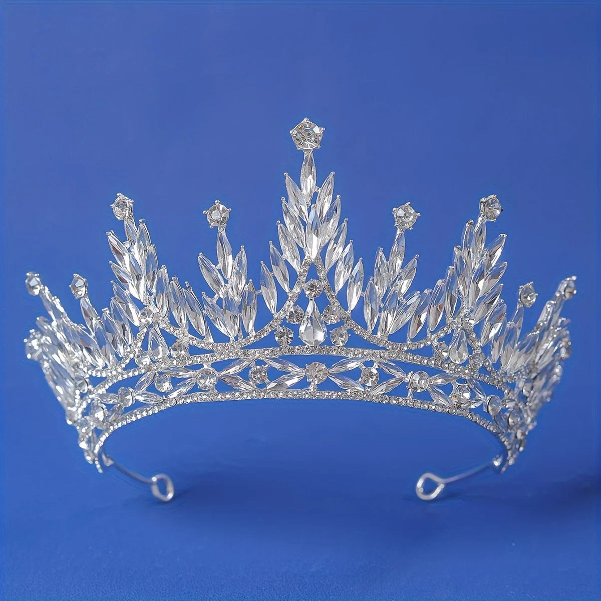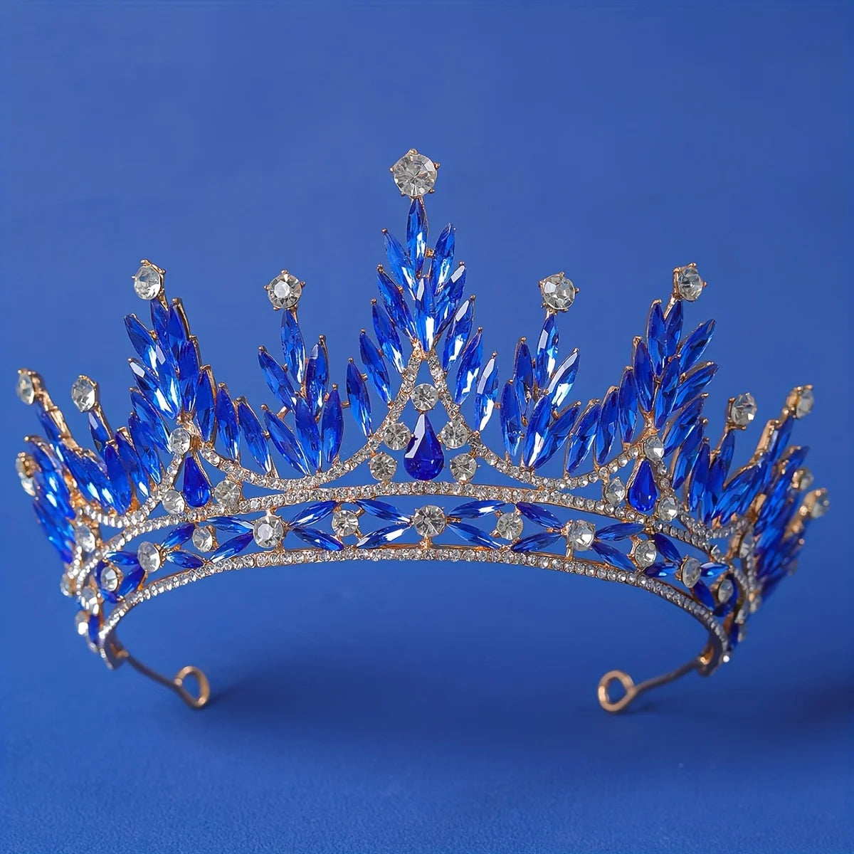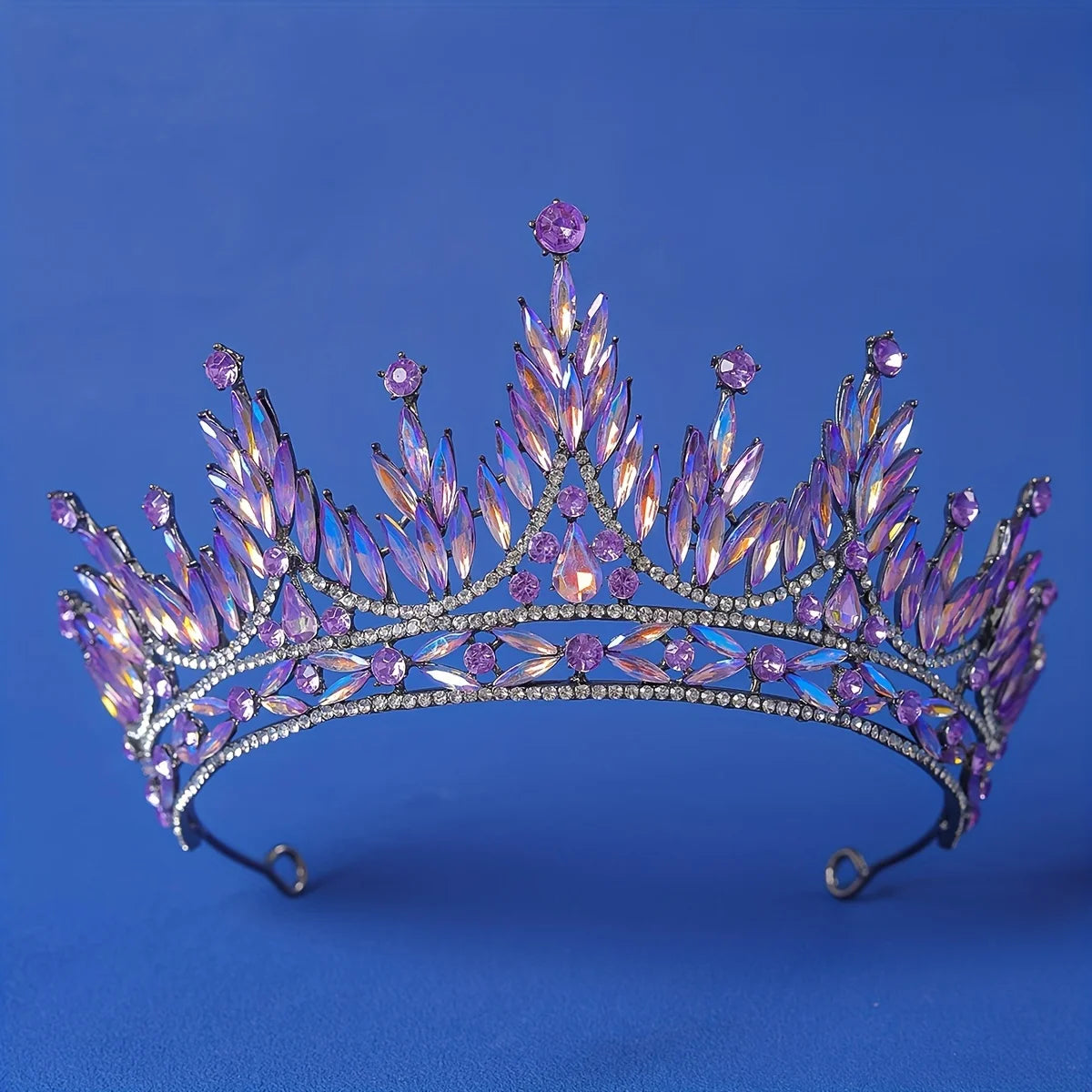 Pageant Crystal Tiara Crown Party Hair Accessories, Capture everyone's attention with this stunning Headband Crystal Crown Tiara Hair Accessories! Featuring a modern and trendy design, this tiara is adorned with vibrant crystal colors, making it a perfect choice for any party or event. Its solid metal frame base adds to its commanding presence, making you stand out and feel like a true queen. Don't miss out on this must-have fashion accessory for any party or bridal look!