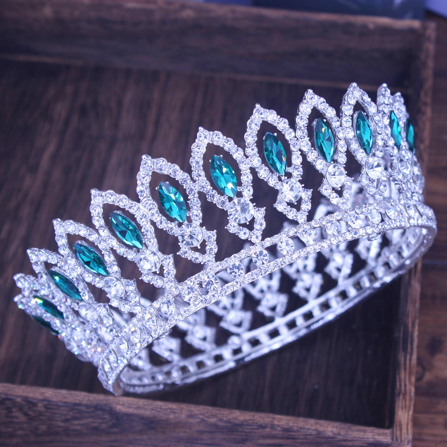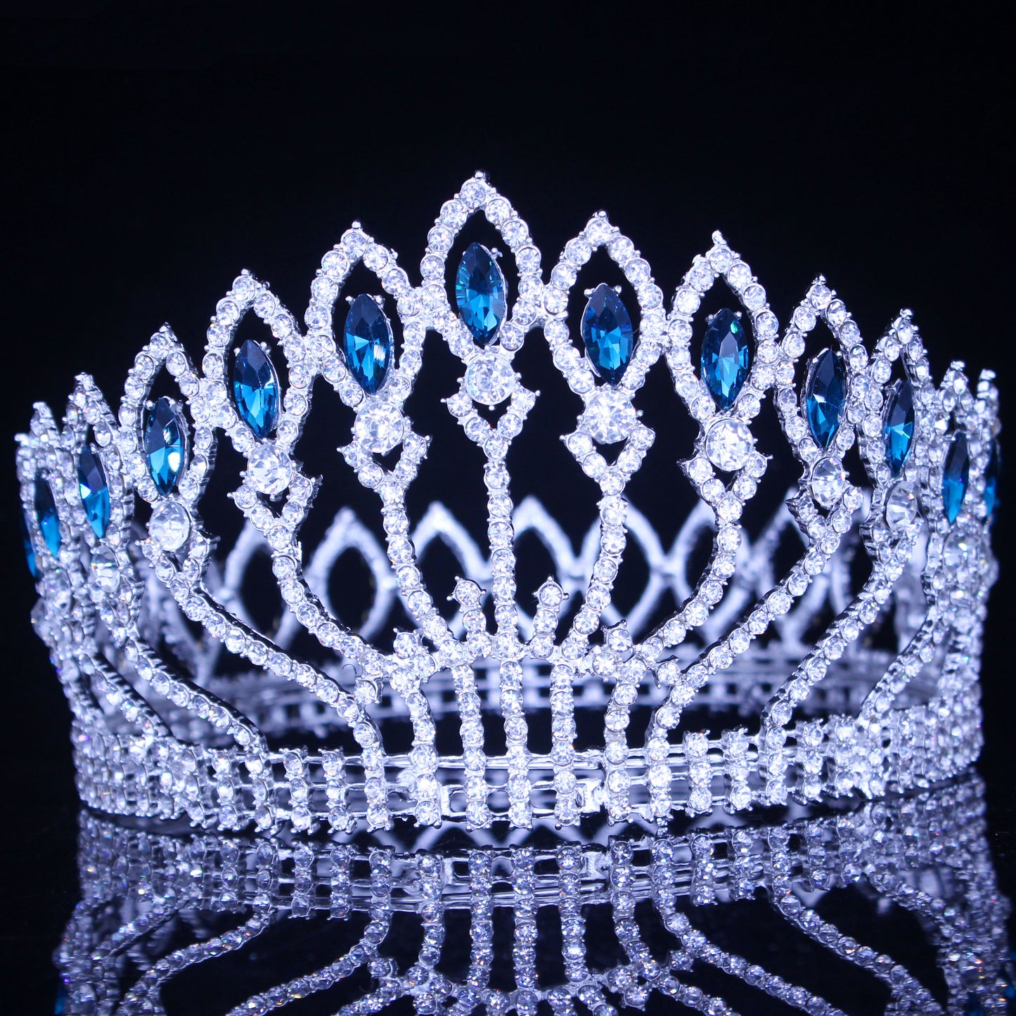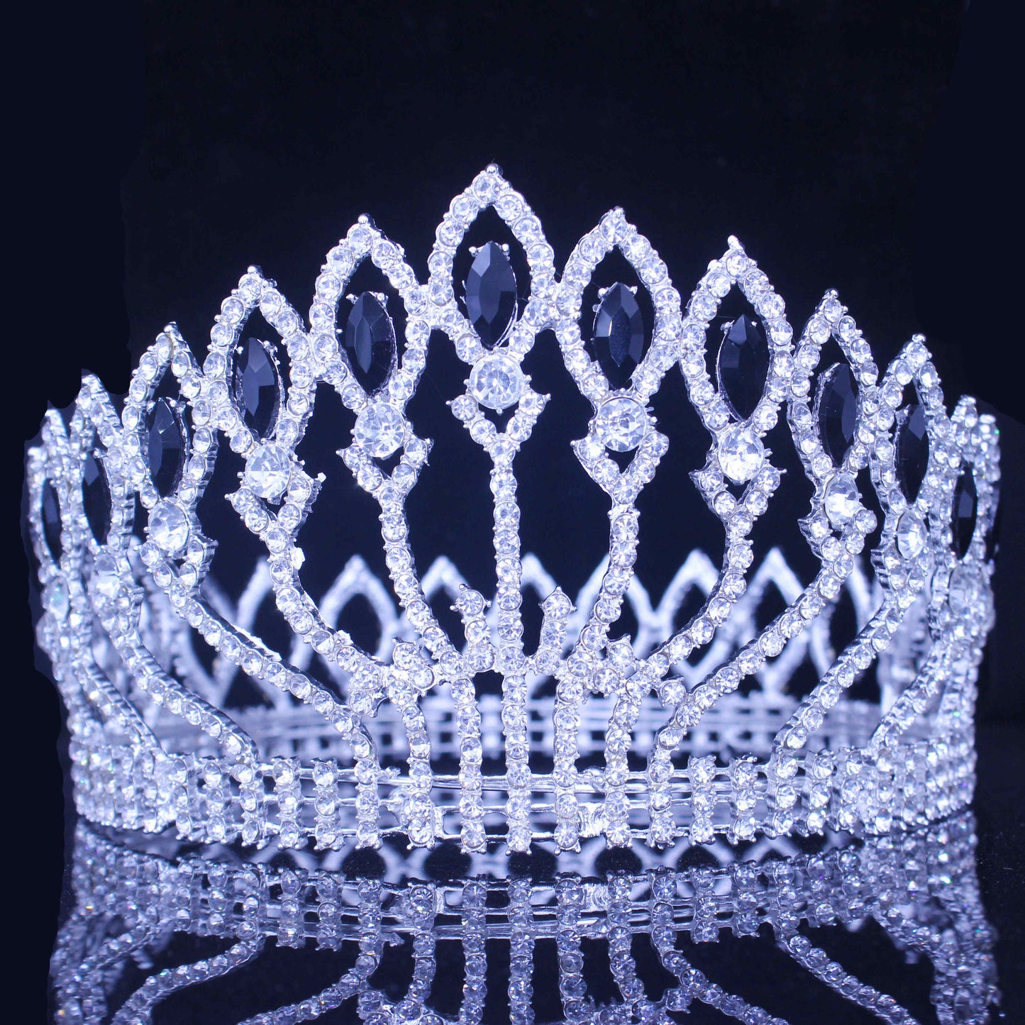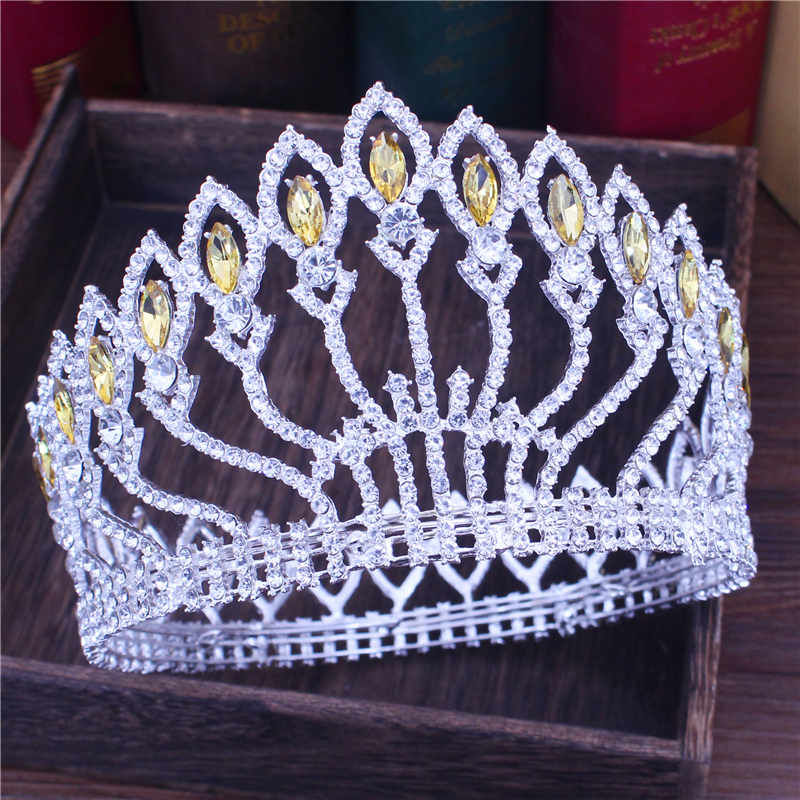 Pageant Tiara Crown Colorful Crystal Queen Winners Hair Accessory, Indulge in the opulence of crystal tiara crowns available in a variety of stunning colors, each adorned with a shimmering center and accent crystals. Exude regal elegance with your choice of silver or gold metal, as seen in the photos.