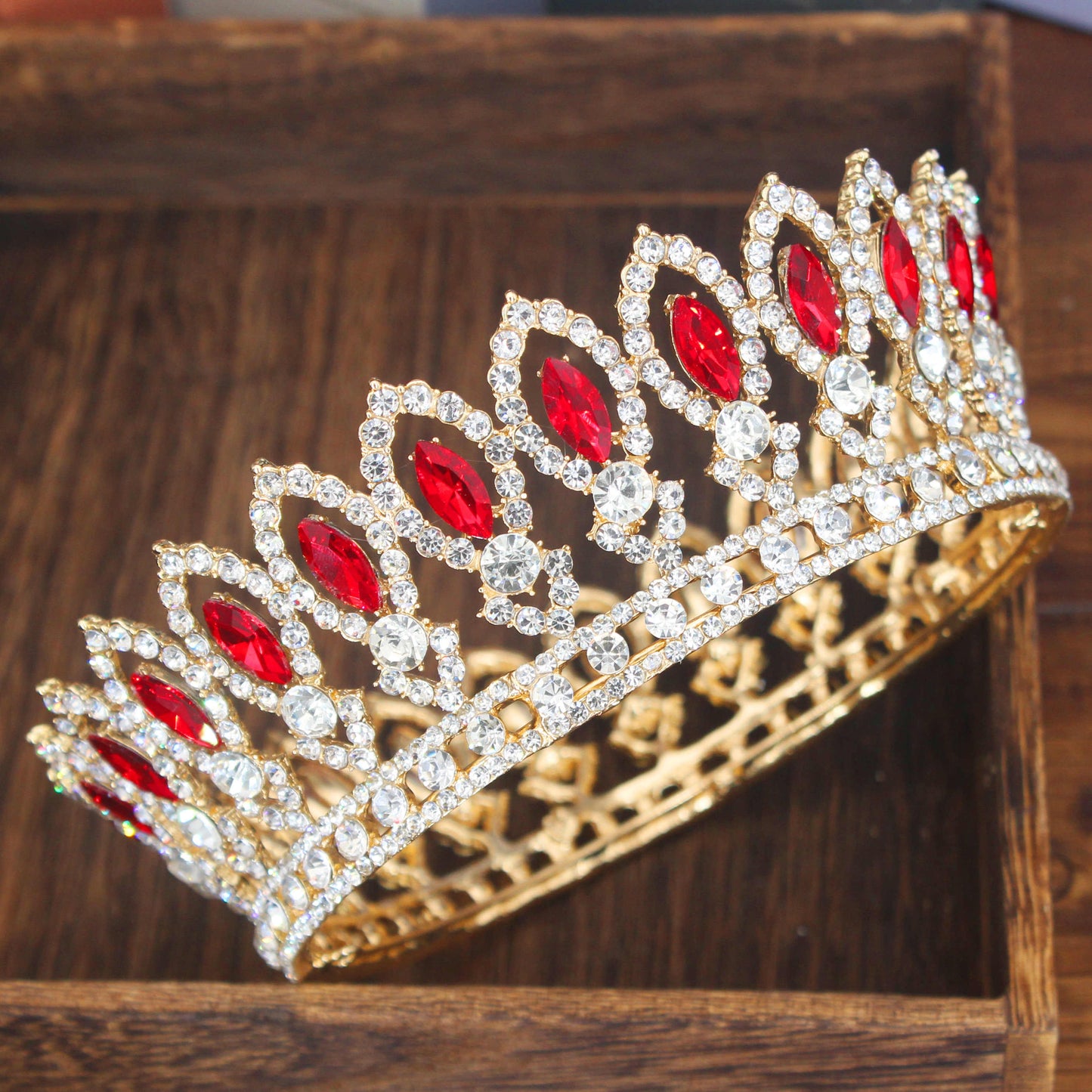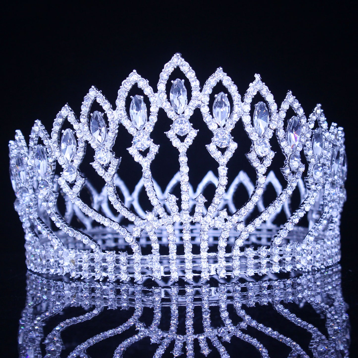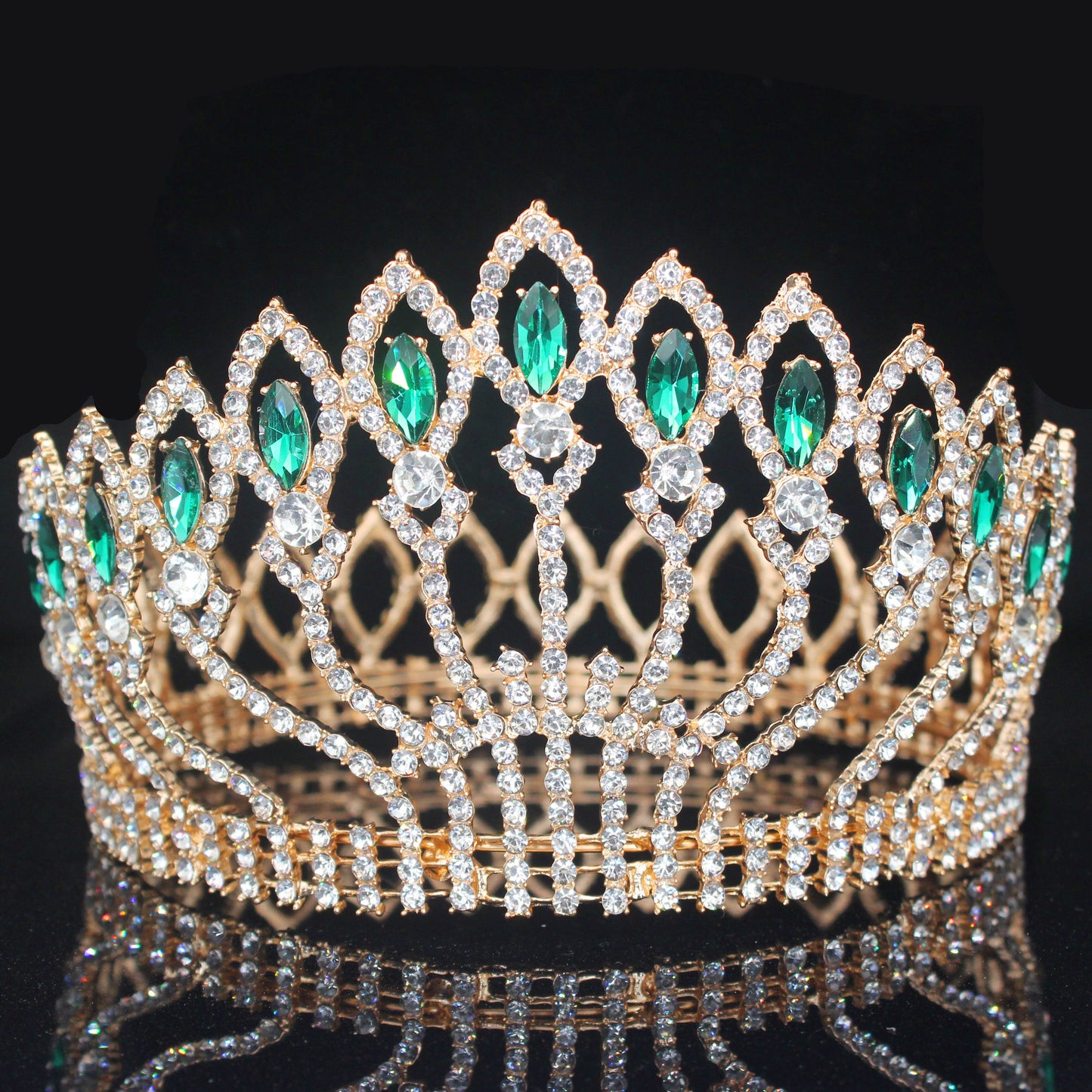 Pageant Tiara Crown Colorful Crystal Queen Winners Hair Accessory, Indulge in the opulence of crystal tiara crowns available in a variety of stunning colors, each adorned with a shimmering center and accent crystals. Exude regal elegance with your choice of silver or gold metal, as seen in the photos.