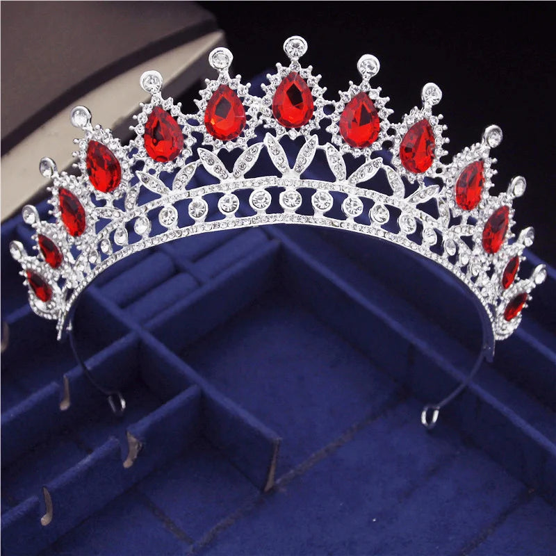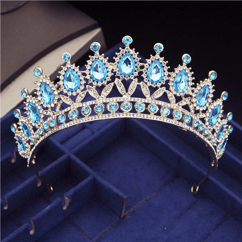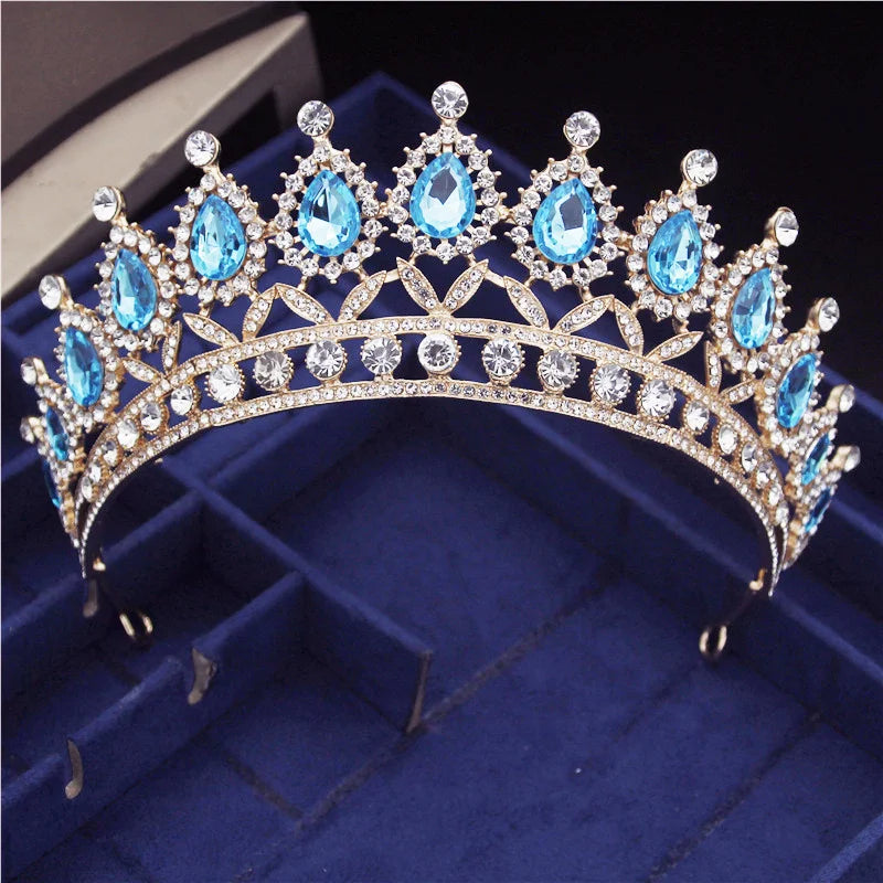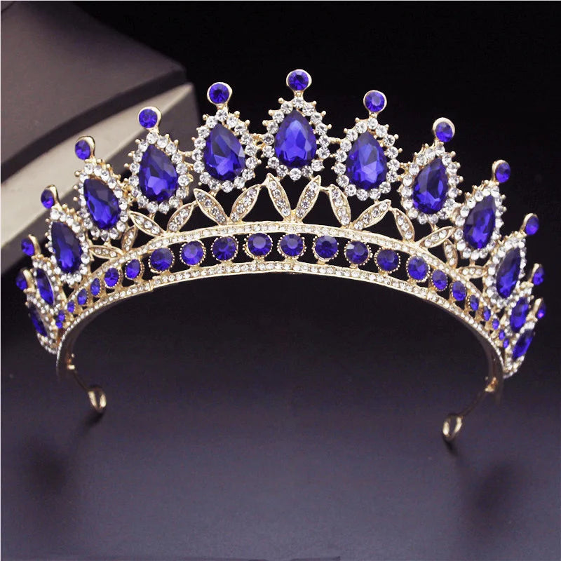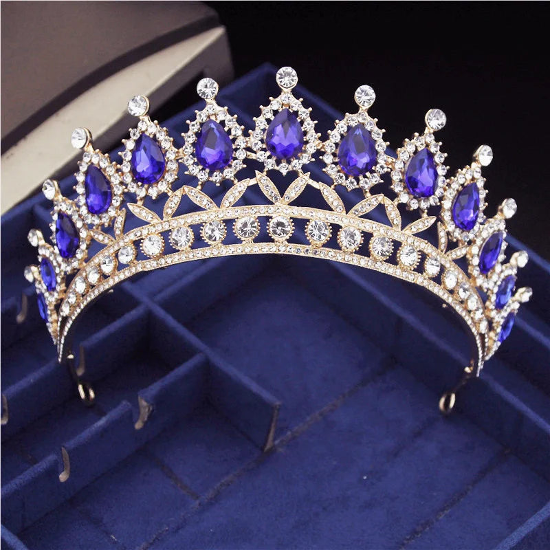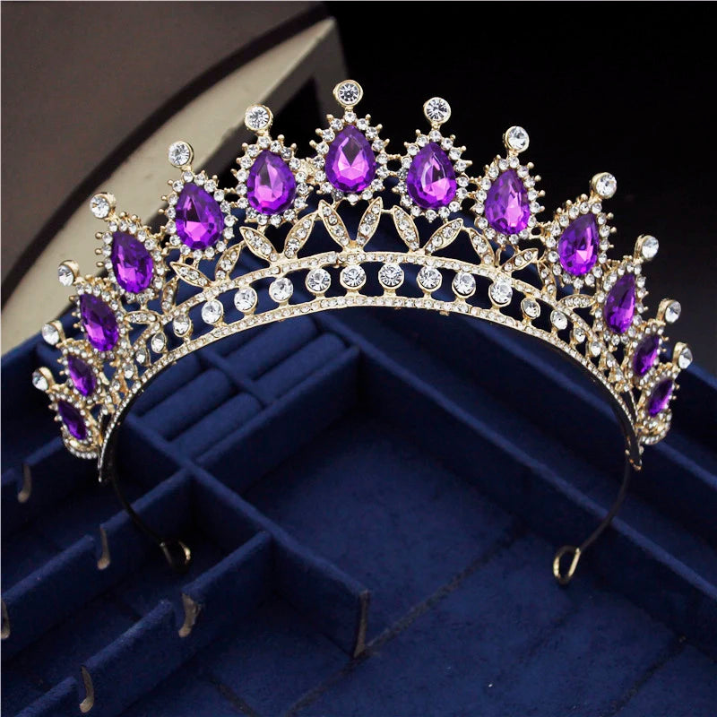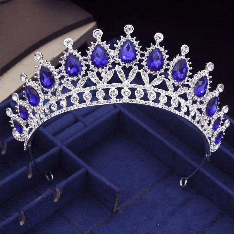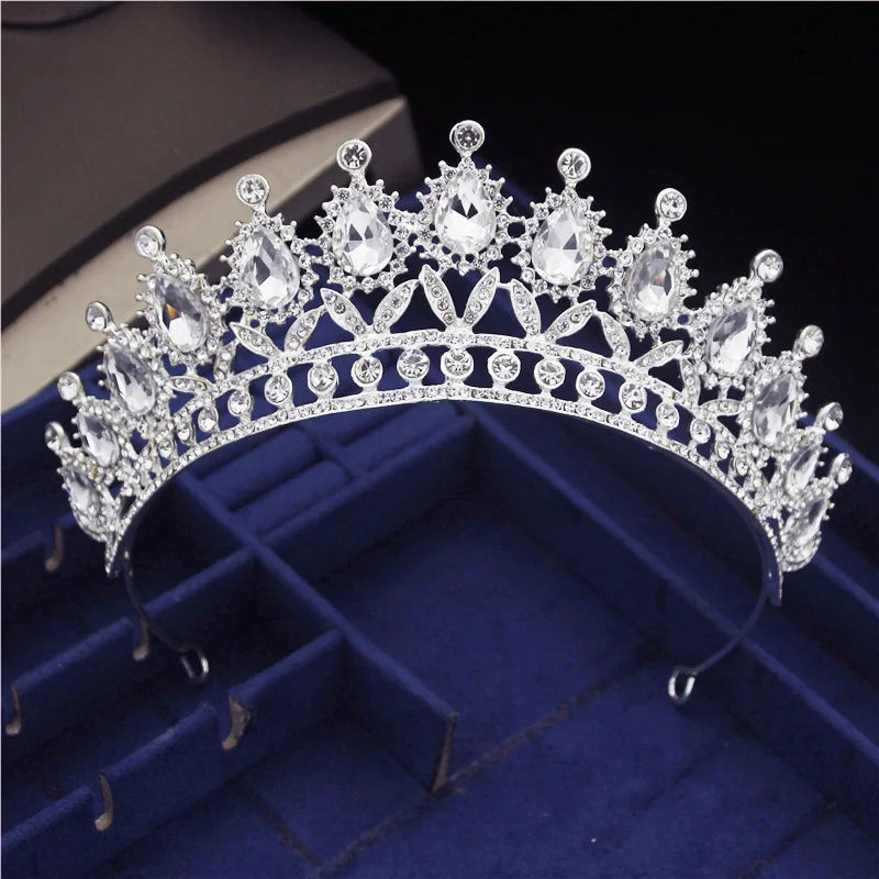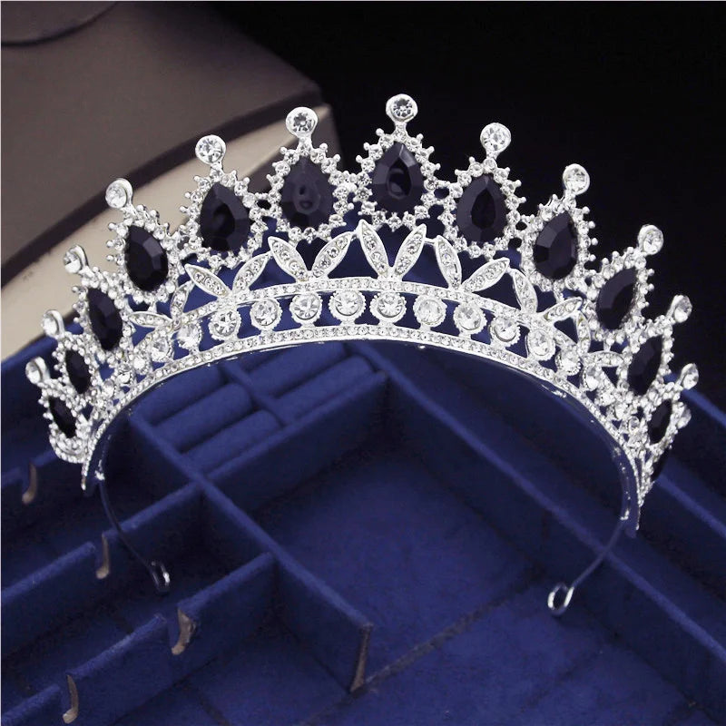 Indulge in opulence with our Princess Crystal Water Drop Tiara Crowns Hair Jewelry Accessory, featuring a regal, modern design in a variety of rich colors. The fully lined crystal bottom rim sparkles with a large water drop pattern, accented by top round crystals.  The convenient loop ends make it effortless to attach a veil, adding an extra touch of elegance to any royal ensemble.