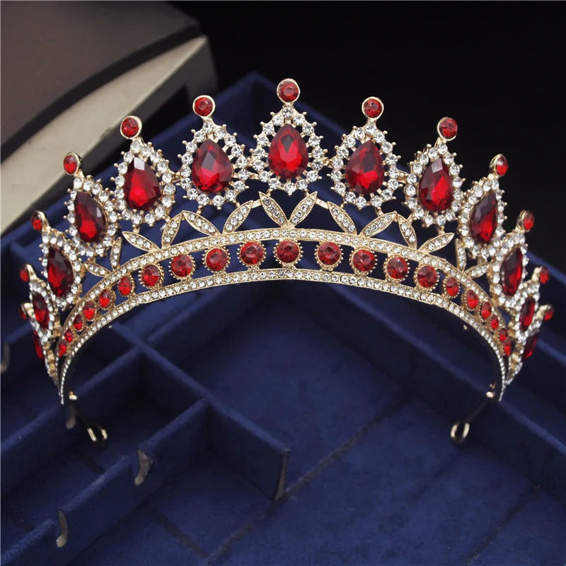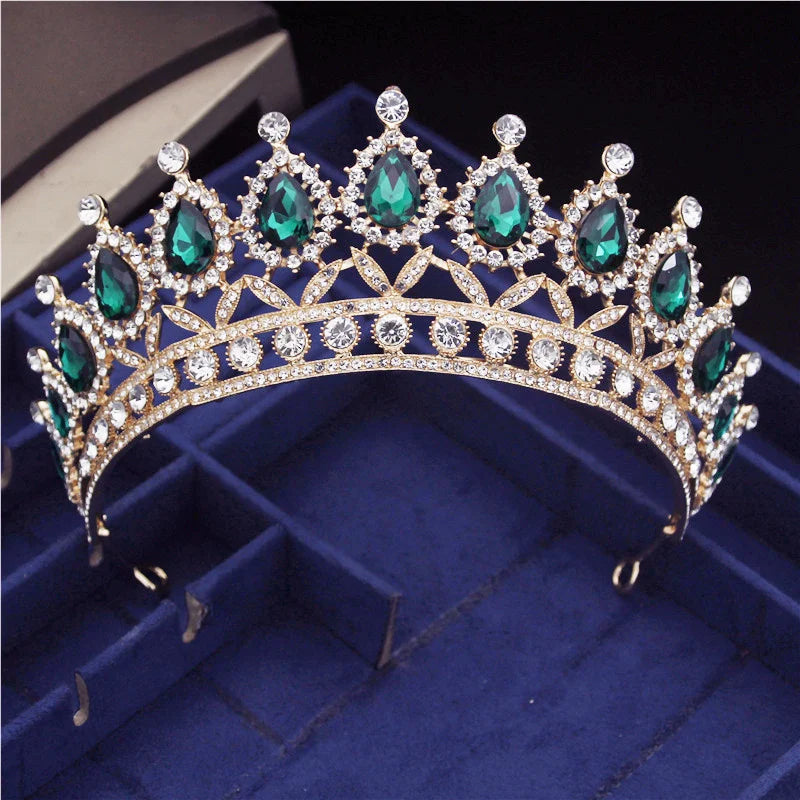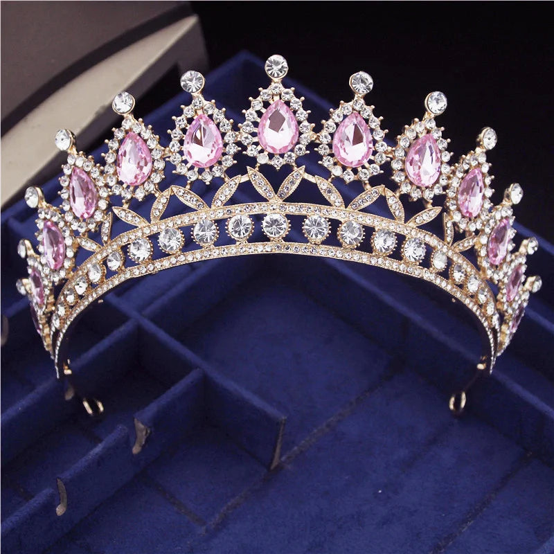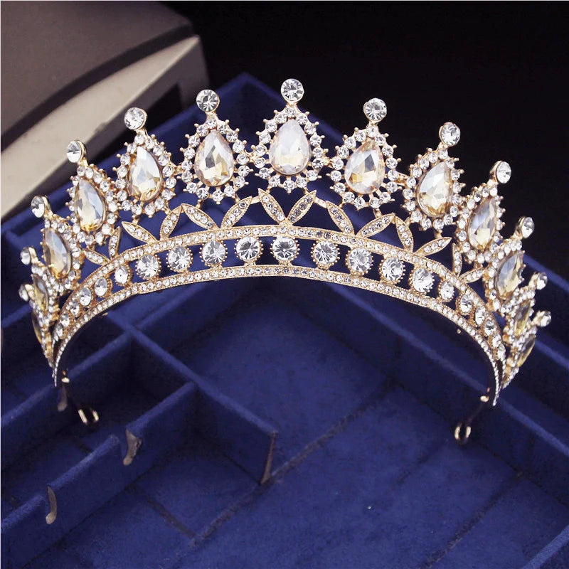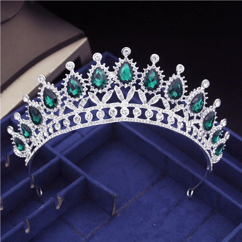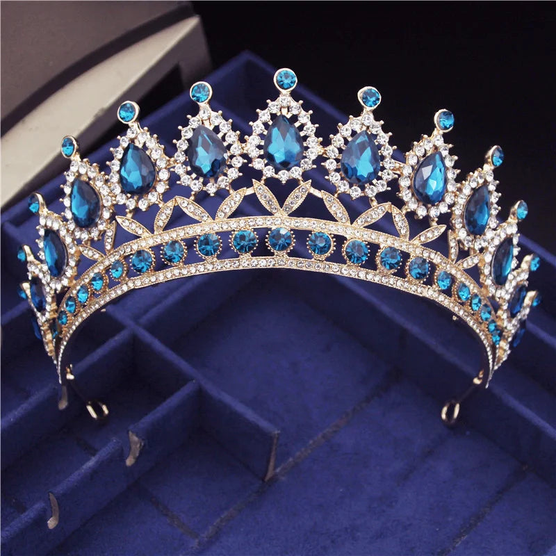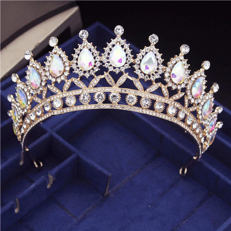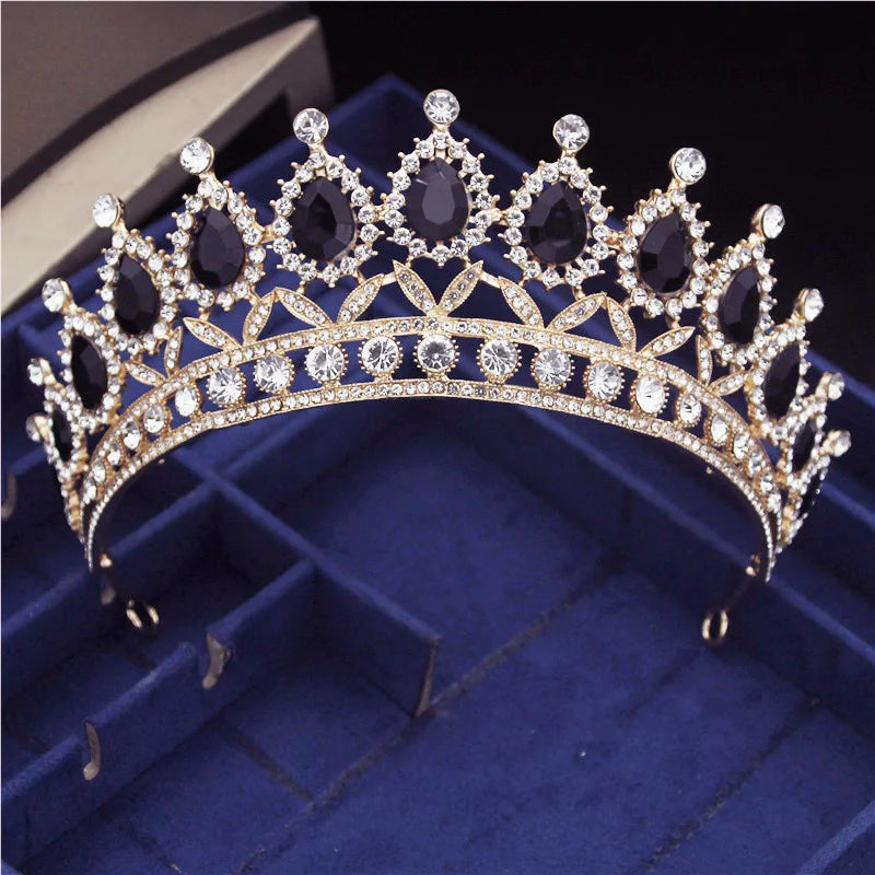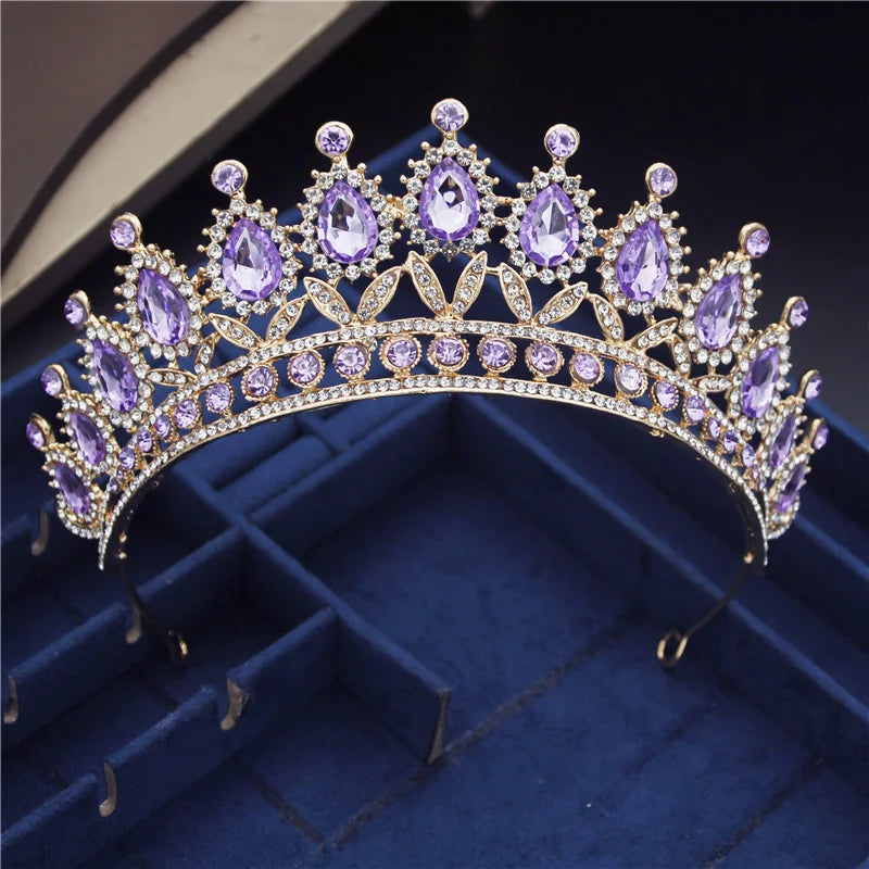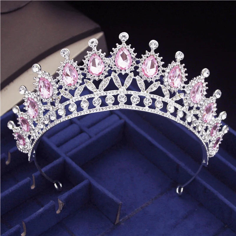 Indulge in opulence with our Princess Crystal Water Drop Tiara Crowns Hair Jewelry Accessory, featuring a regal, modern design in a variety of rich colors. The fully lined crystal bottom rim sparkles with a large water drop pattern, accented by top round crystals.  The convenient loop ends make it effortless to attach a veil, adding an extra touch of elegance to any royal ensemble.