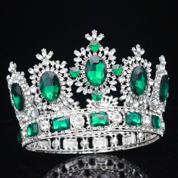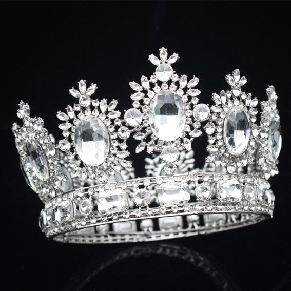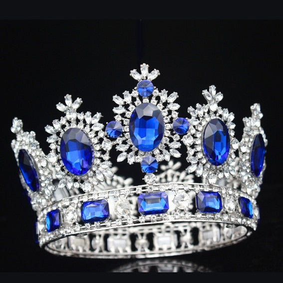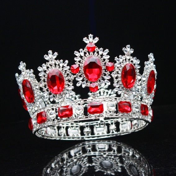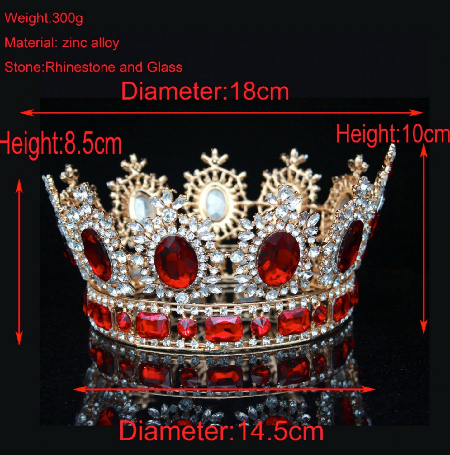 Round Crown Crystal Queen King Pageant Hair Accessories, Transform into a majestic queen with the elegant Crystal Queen Pageant Bridal Crown. Adorned with stunning oval cut crystals and vibrant colors, this crown stands at four inches tall and features a regal, alternating rectangle and round crystal base rim.