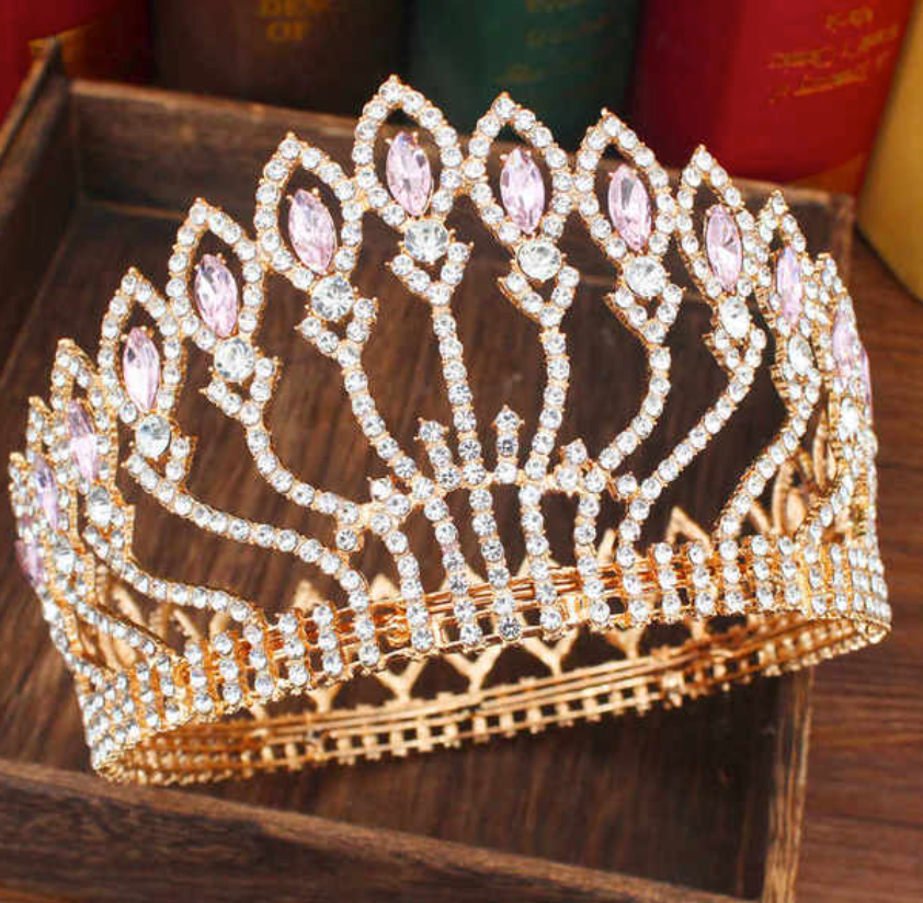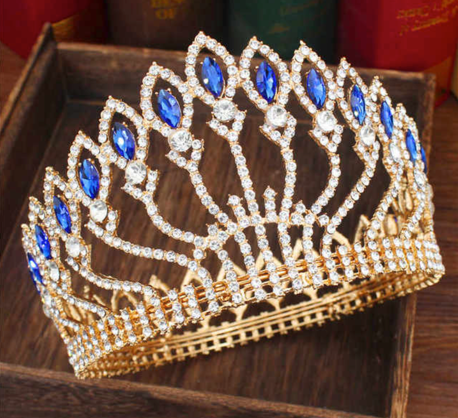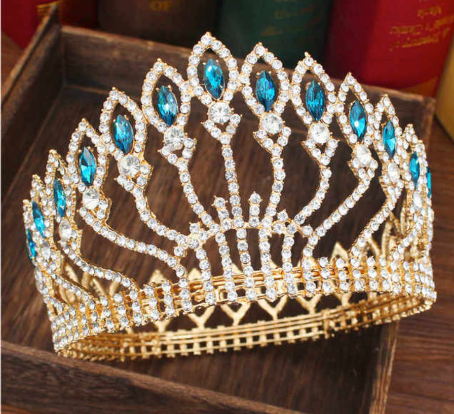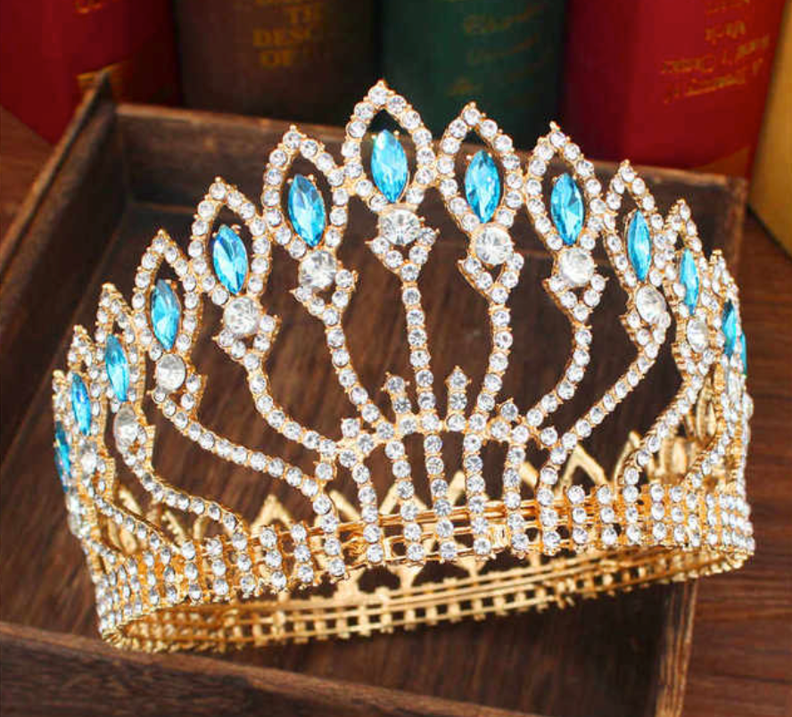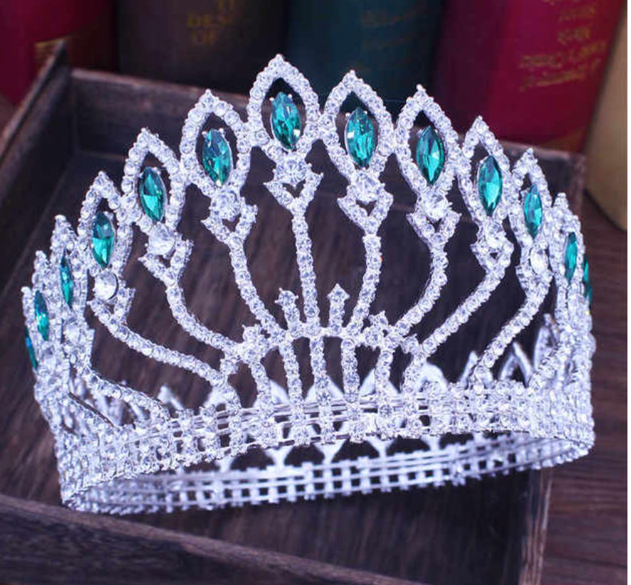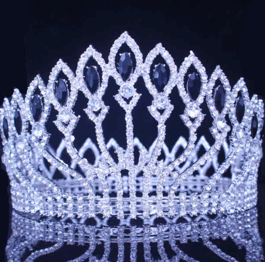 Round Crown Sparkling Crystal Queen Pageant Hair Accessory, Indulge in the ultimate opulence with this luxurious four inch high princess pageant tiara full round crown, available in a variety of sparkling color combinations to elevate your pageant experience to new heights.