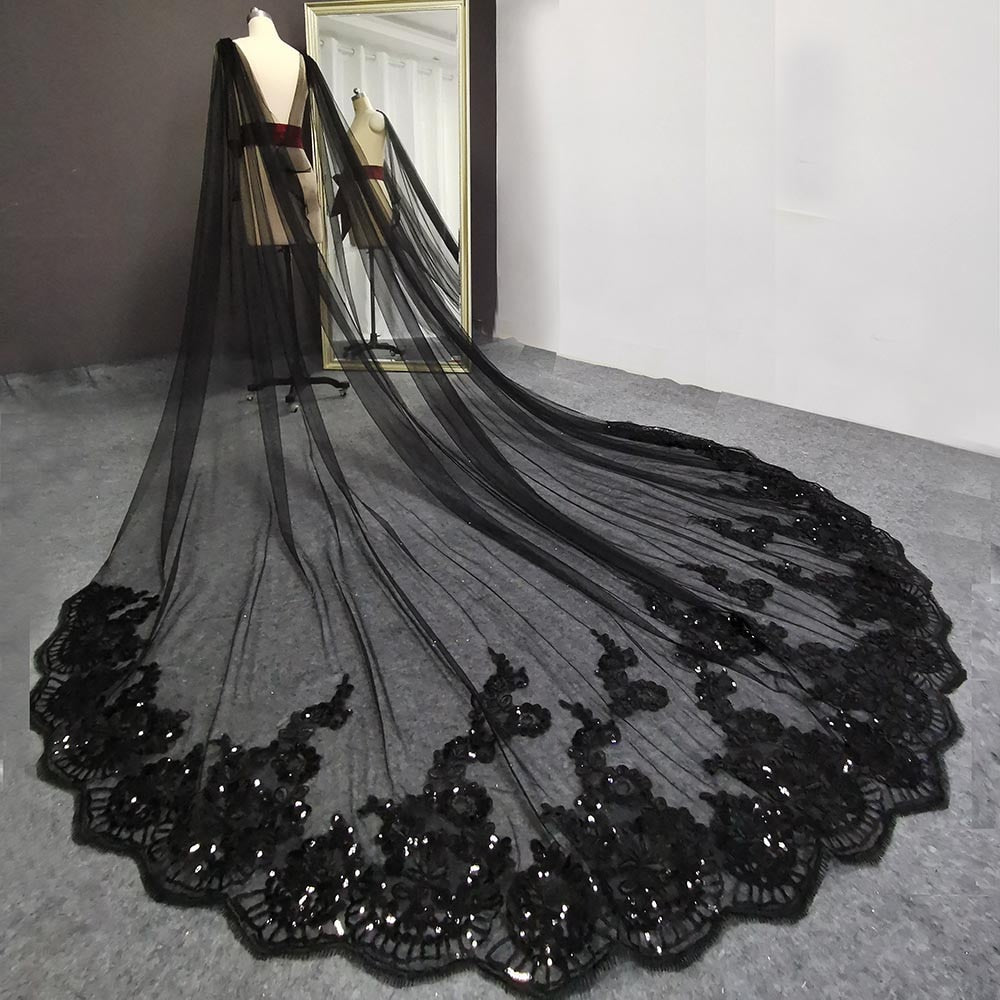 Wedding Shoulder Veil Long Sequin Lace Cathedral Cape Bridal Accessory