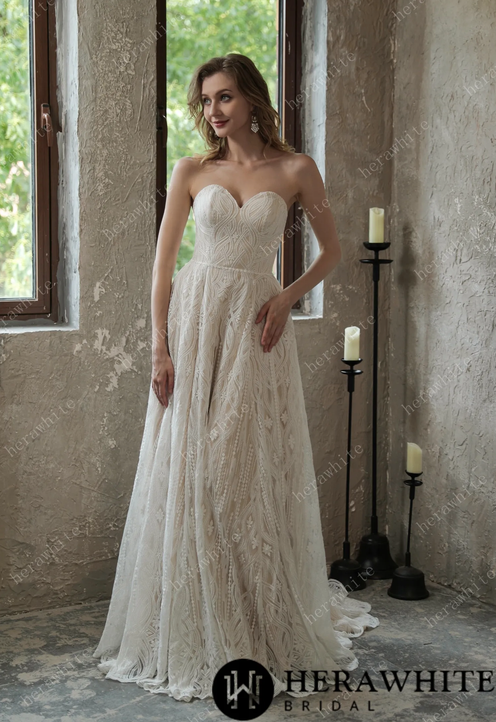 Wedding Dress Allover Lace Boho Gown With Corset Back