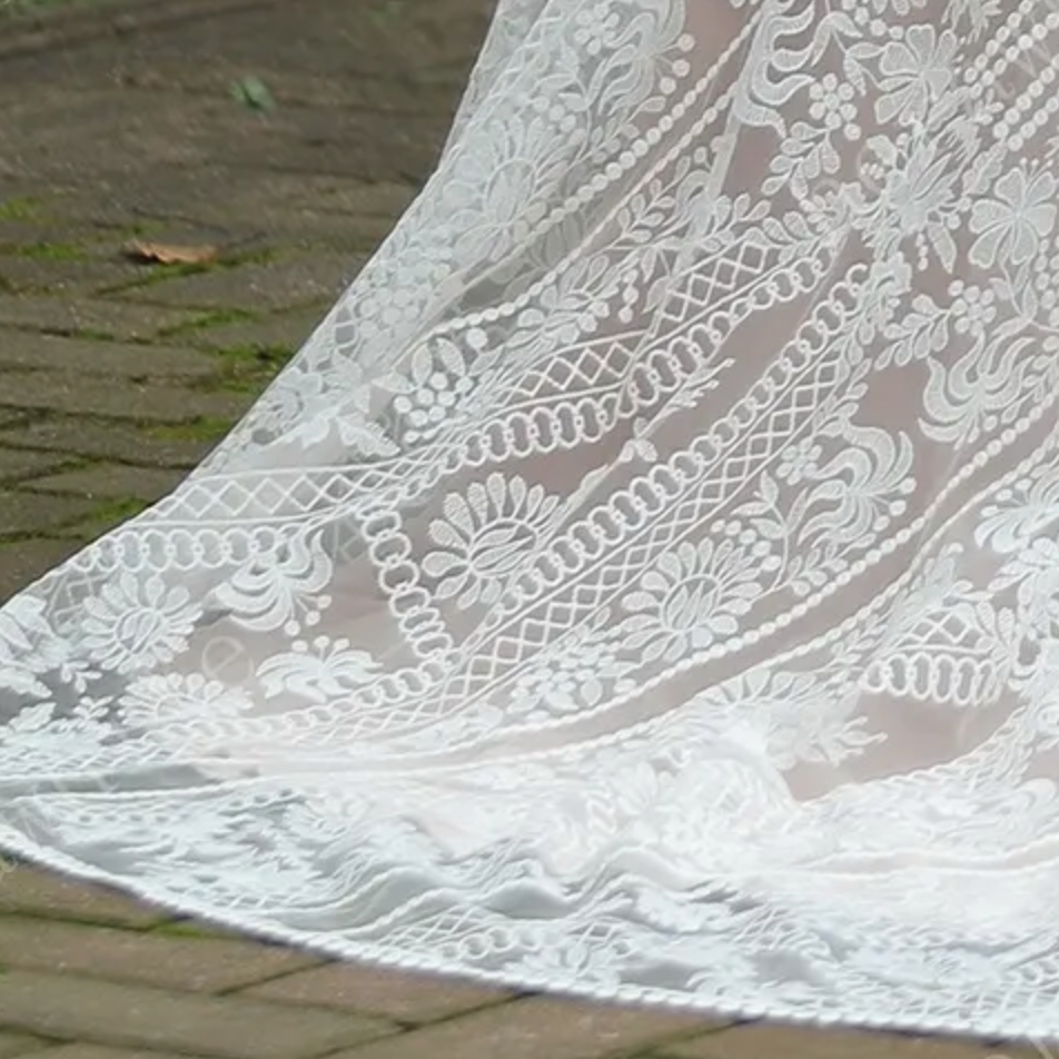 People ask about the risk of buying online and not being able to try on the dress. We recommend you go to a local bridal shop to try on wedding dress styles to find your dream dress style, then shop online for a wider selection and with better knowledge and understanding of what style dress looks best on you. Use the online model photos as a guide. Some models will be holding a dress out or the full train is spread out, this is to show the dress detail to the customer.