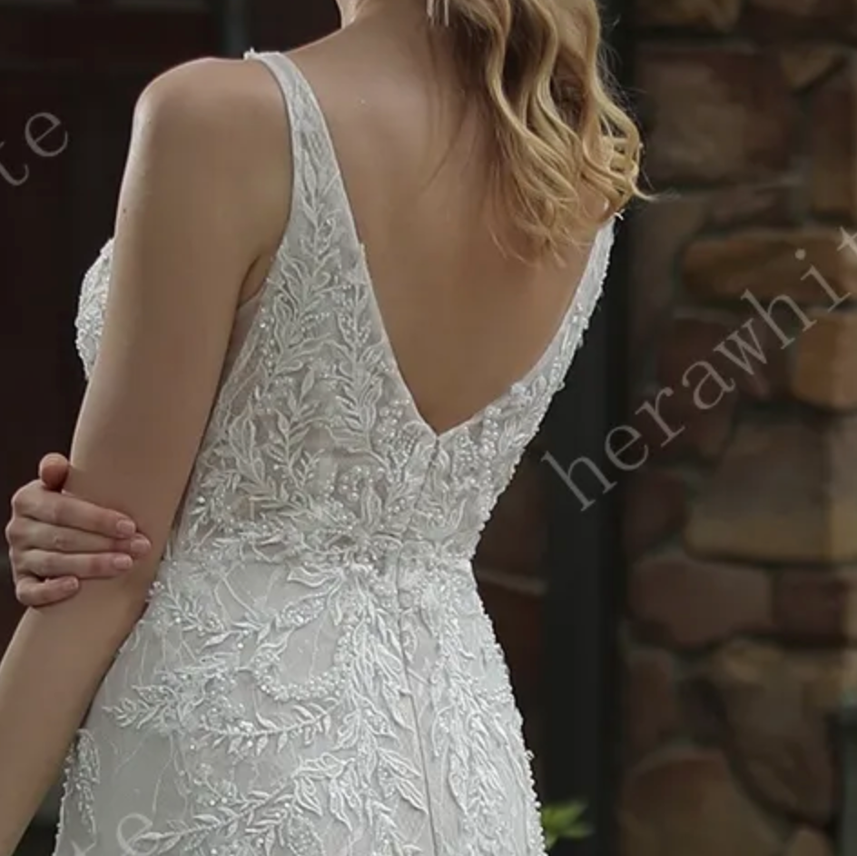 People ask about the risk of buying online and not being able to try on the dress. We recommend you go to a local bridal shop to try on wedding dress styles to find your dream dress style, then shop online for a wider selection and with better knowledge and understanding of what style dress looks best on you. Use the online model photos as a guide. Some models will be holding a dress out or the full train is spread out, this is to show the dress detail to the customer.