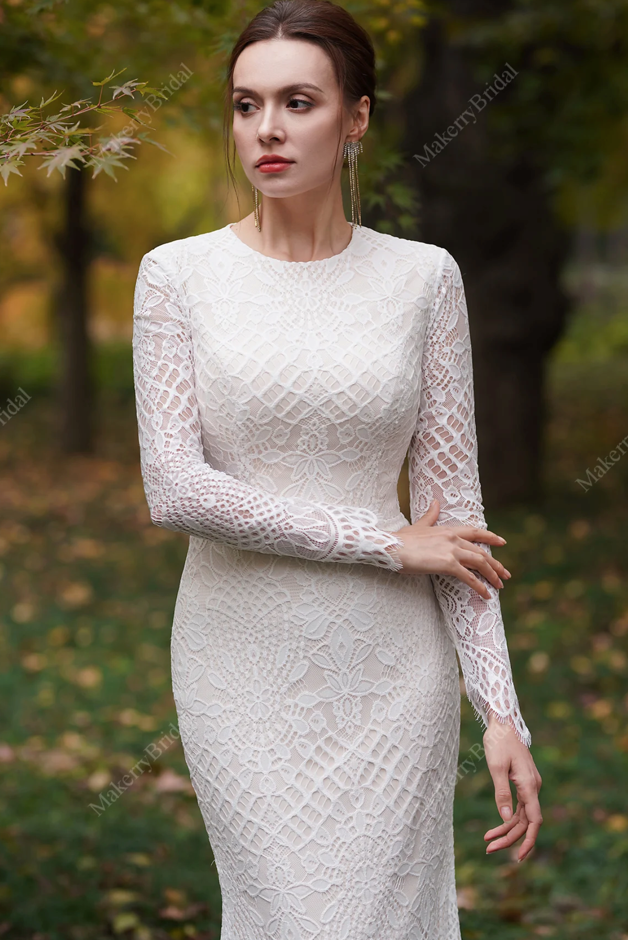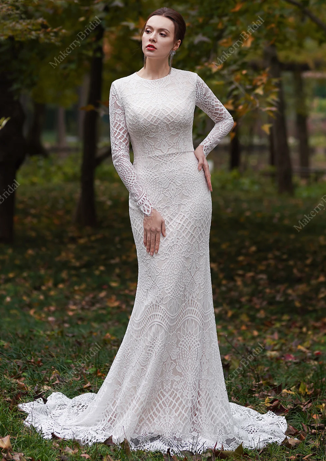 Wedding Dress Modest Long Sleeve Lace Mermaid Bridal Gown