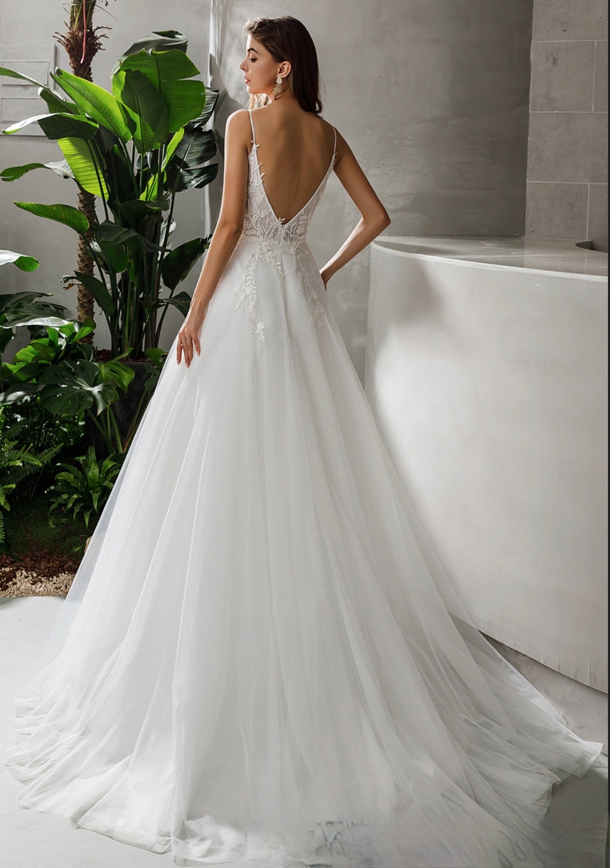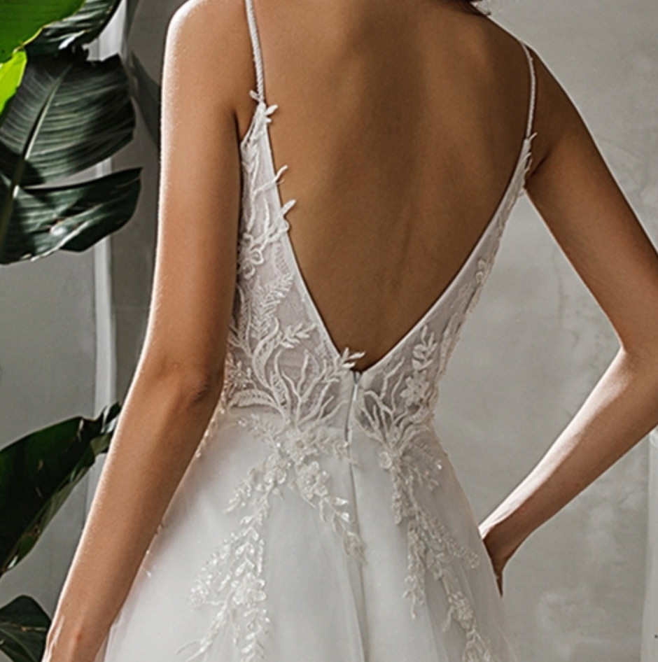 People ask about the risk of buying online and not being able to try on the dress. We recommend you go to a local bridal shop to try on wedding dress styles to find your dream dress style, then shop online for a wider selection and with better knowledge and understanding of what style dress looks best on you. Use the online model photos as a guide. Some models will be holding a dress out or the full train is spread out, this is to show the dress detail to the customer.