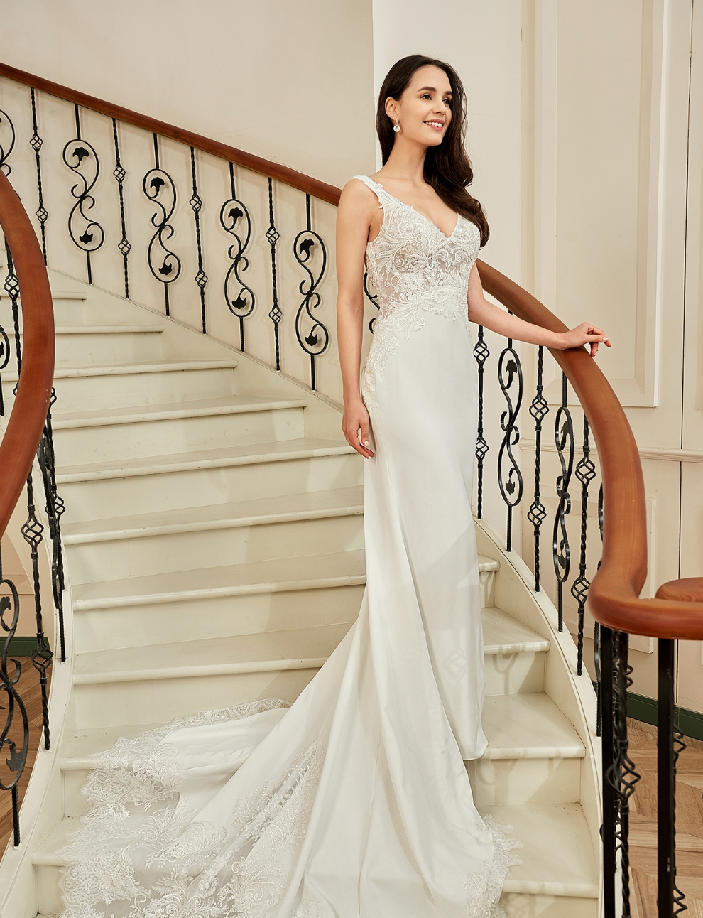 People ask about the risk of buying online and not being able to try on the dress. We recommend you go to a local bridal shop to try on wedding dress styles to find your dream dress style, then shop online for a wider selection and with better knowledge and understanding of what style dress looks best on you. Use the online model photos as a guide. Some models will be holding a dress out or the full train is spread out, this is to show the dress detail to the customer.