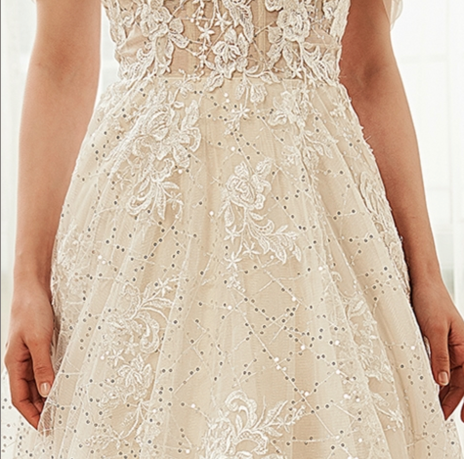 Wedding Dress Floral Lace Sequin Tulle Detachable Straps