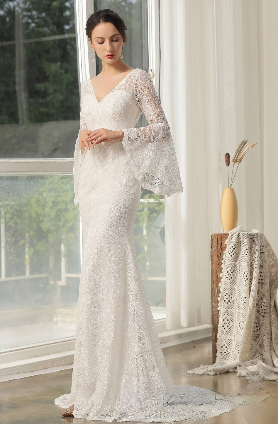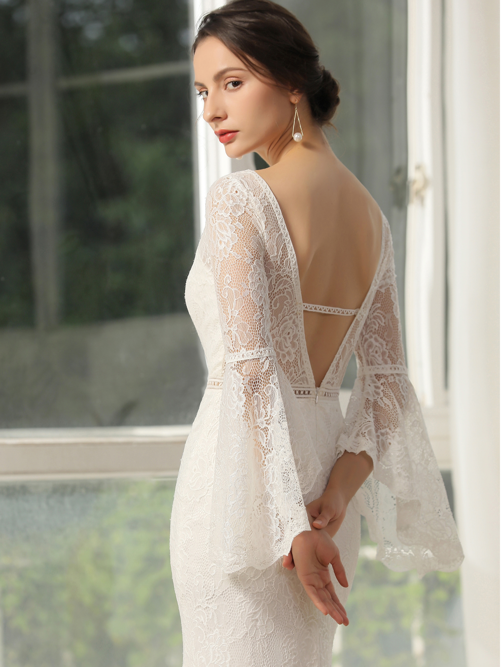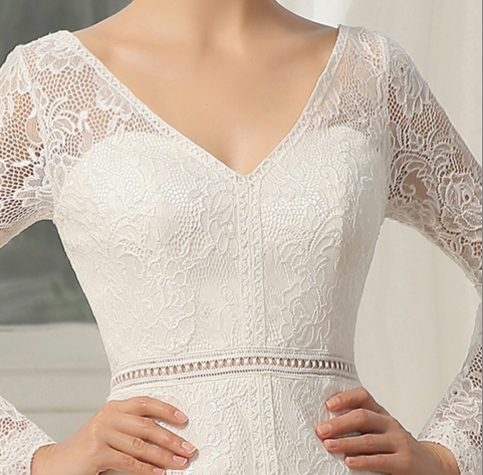 People ask about the risk of buying online and not being able to try on the dress. We recommend you go to a local bridal shop to try on wedding dress styles to find your dream dress style, then shop online for a wider selection and with better knowledge and understanding of what style dress looks best on you. Use the online model photos as a guide. Some models will be holding a dress out or the full train is spread out, this is to show the dress detail to the customer.