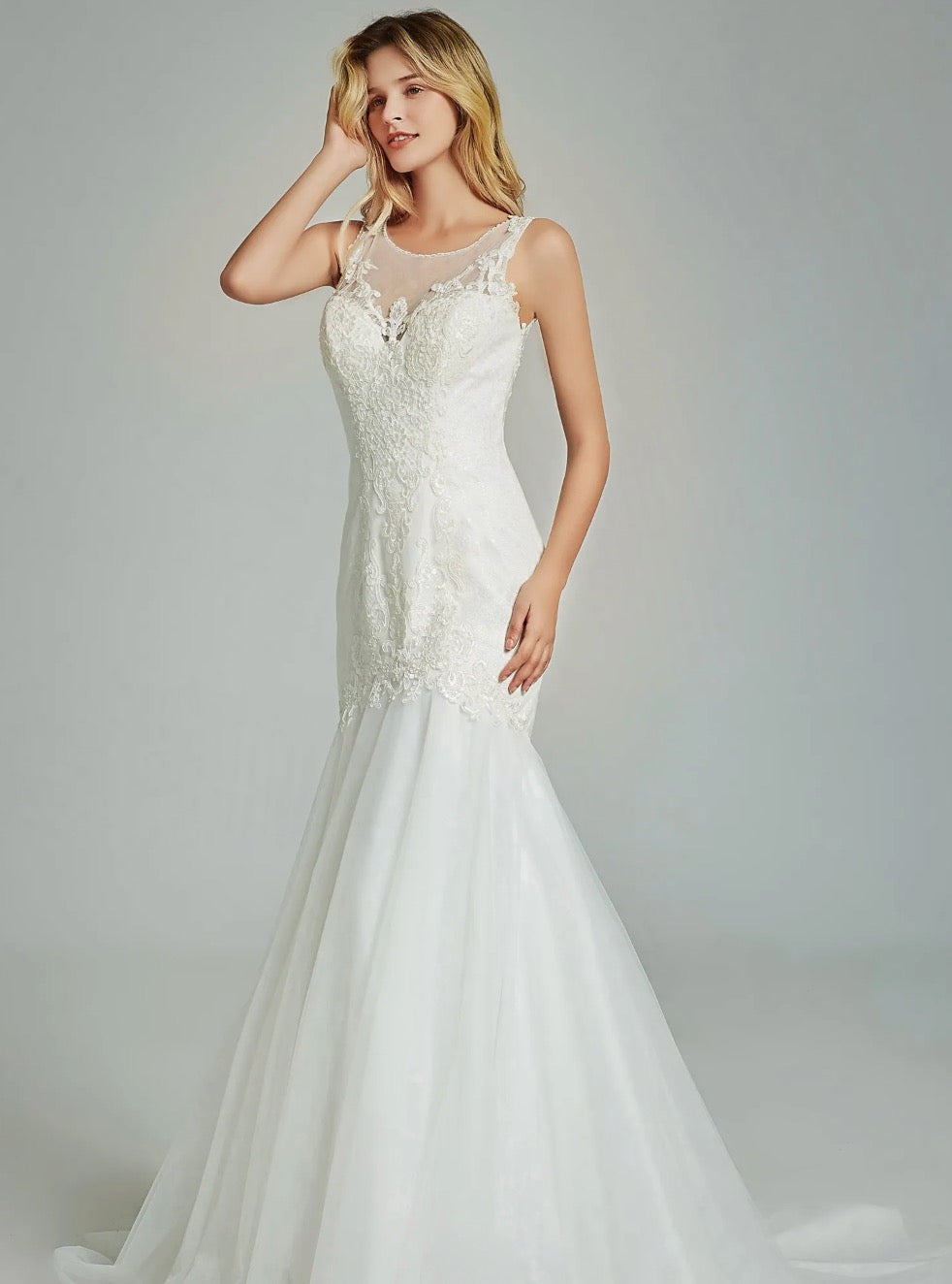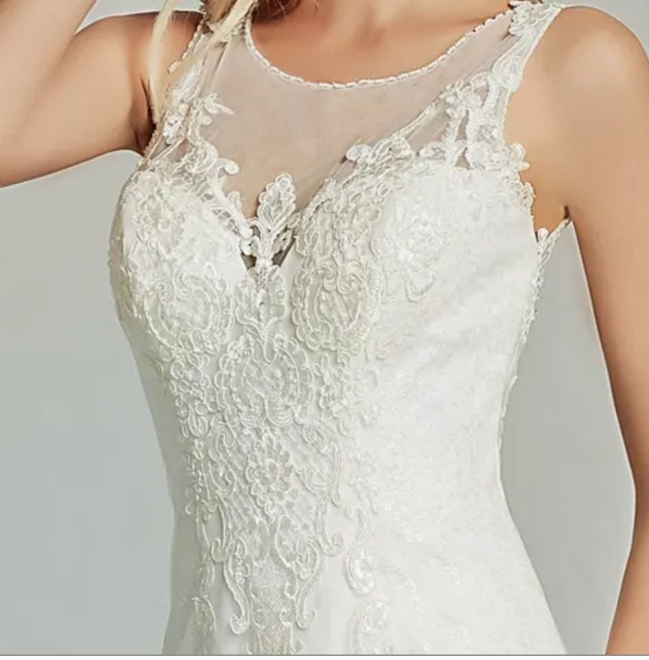 People ask about the risk of buying online and not being able to try on the dress. We recommend you go to a local bridal shop to try on wedding dress styles to find your dream dress style, then shop online for a wider selection and with better knowledge and understanding of what style dress looks best on you. Use the online model photos as a guide. Some models will be holding a dress out or the full train is spread out, this is to show the dress detail to the customer.