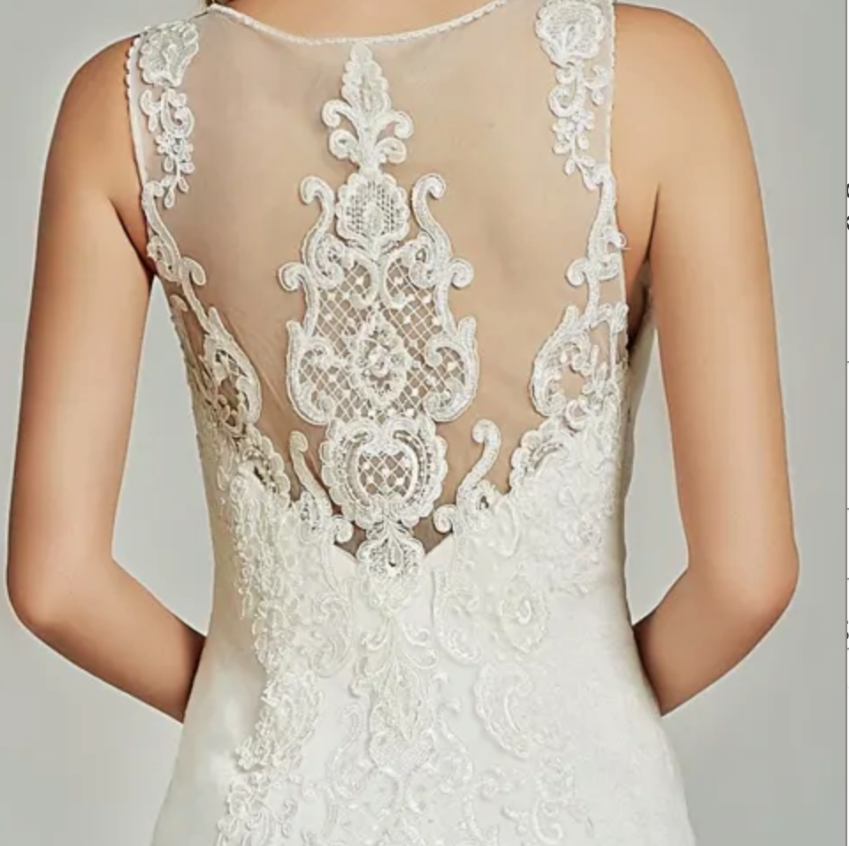 Satin Wedding Dress Mermaid Tulle Illusion Back Bridal Gown
