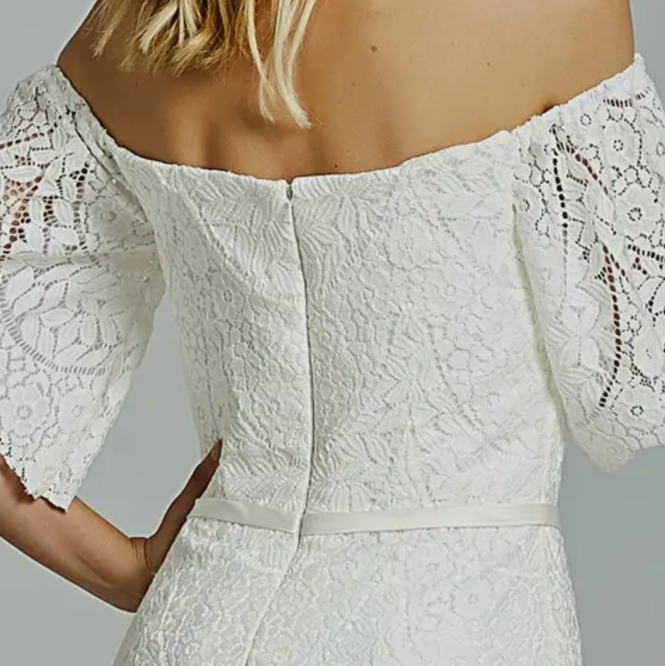 People ask about the risk of buying online and not being able to try on the dress. We recommend you go to a local bridal shop to try on wedding dress styles to find your dream dress style, then shop online for a wider selection and with better knowledge and understanding of what style dress looks best on you. Use the online model photos as a guide. Some models will be holding a dress out or the full train is spread out, this is to show the dress detail to the customer.