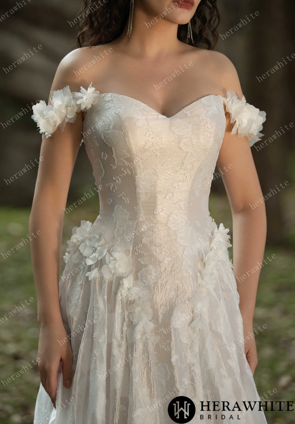 Wedding Dress 3D Flower Embellished Floral Jacquard Gown