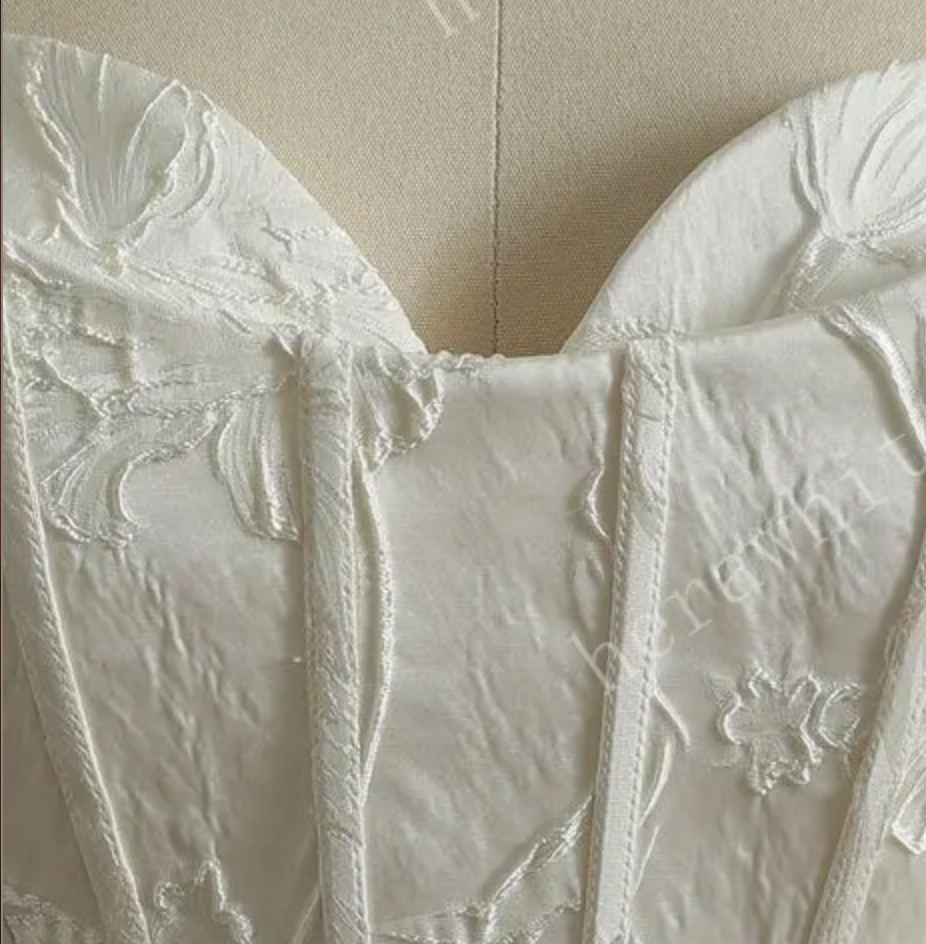 The dresses have a LET seam which is an important part of your dress, in case you need to let the dress in or out. Please be prepared to have some alterations done to your dress. You should do a final fitting locally close to your wedding date where the dress may be adjusted to your current body sizing for the most snug fit on your special day. Because your dress was shipped and not hanging in a dress shop, your dress may need to be pressed to get wrinkles out. Never use an iron on a dress and only the top outer layer should be pressed using a steam presser with a white cloth underneath so the presser does not come into direct contact with the fabric. Petticoats may also be needed for fuller ball gowns in order to puff out a skirt.