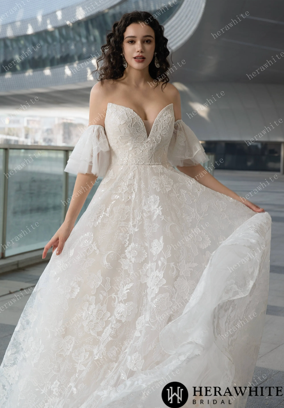 People ask about the risk of buying online and not being able to try on the dress. We recommend you go to a local bridal shop to try on wedding dress styles to find your dream dress style, then shop online for a wider selection and with better knowledge and understanding of what style dress looks best on you. Use the online model photos as a guide. Some models will be holding a dress out or the full train is spread out, this is to show the dress detail to the customer.
