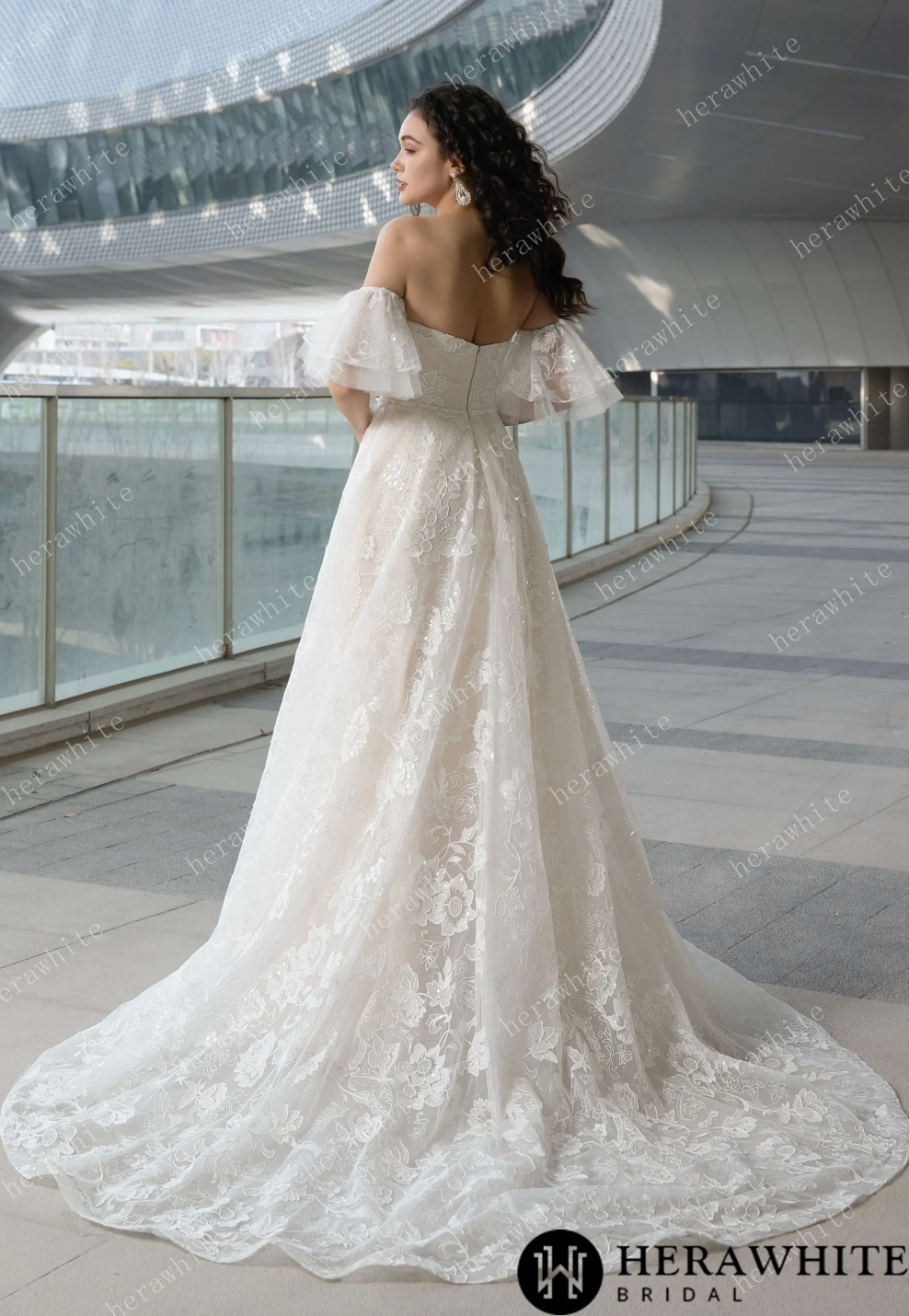 Wedding Dress V-Neck Allover Lace With Chapel Train, This stunning dress seamlessly blends classic romance with contemporary versatility. The deep V-neckline beautifully showcases the neckline, and the intricate lace detailing adds refined texture and elegance. The lightweight tulle fabric creates a graceful silhouette, highlighting curves in all the right places. With the option to add or remove the ruffle sleeves, this dress offers the perfect combination of whimsy and sophistication. A concealed back zipper ensures a flawless fit, while the chapel-length train adds a touch of drama. Ideal for brides who desire a harmonious blend of timeless charm and adaptable style, this dress effortlessly transitions from ceremony to celebration.
