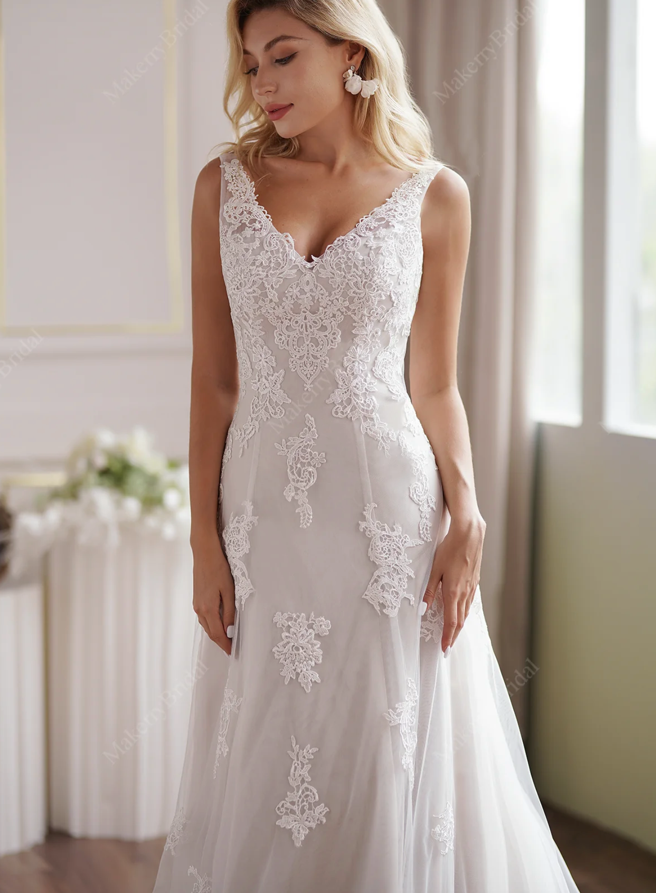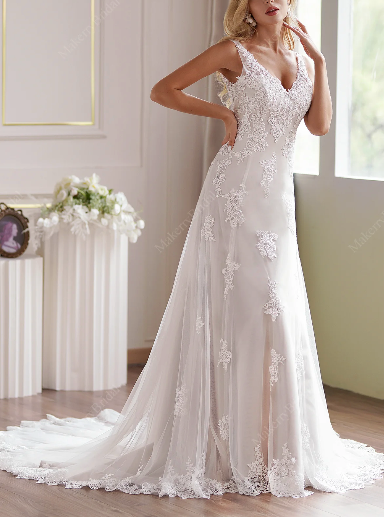Wedding Dress Tulle Lace Satin A Line Bridal Gown With Train