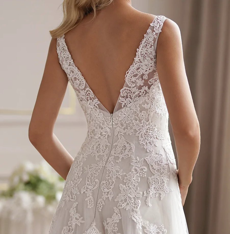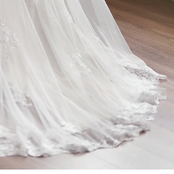 The dresses have a LET seam which is an important part of your dress, in case you need to let the dress in or out. Please be prepared to have some alterations done to your dress. You should do a final fitting locally close to your wedding date where the dress may be adjusted to your current body sizing for the most snug fit on your special day. Because your dress was shipped and not hanging in a dress shop, your dress may need to be pressed to get wrinkles out. Never use an iron on a dress and only the top outer layer should be pressed using a steam presser with a white cloth underneath so the presser does not come into direct contact with the fabric. Petticoats may also be needed for fuller ball gowns in order to puff out a skirt.