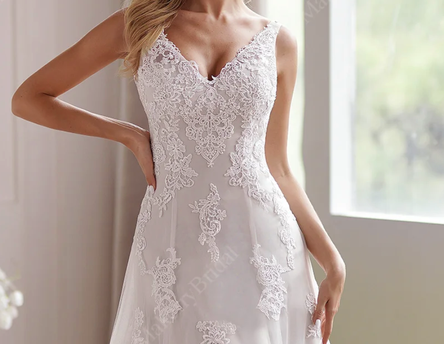People ask about the risk of buying online and not being able to try on the dress. We recommend you go to a local bridal shop to try on wedding dress styles to find your dream dress style, then shop online for a wider selection and with better knowledge and understanding of what style dress looks best on you. Use the online model photos as a guide. Some models will be holding a dress out or the full train is spread out, this is to show the dress detail to the customer.
