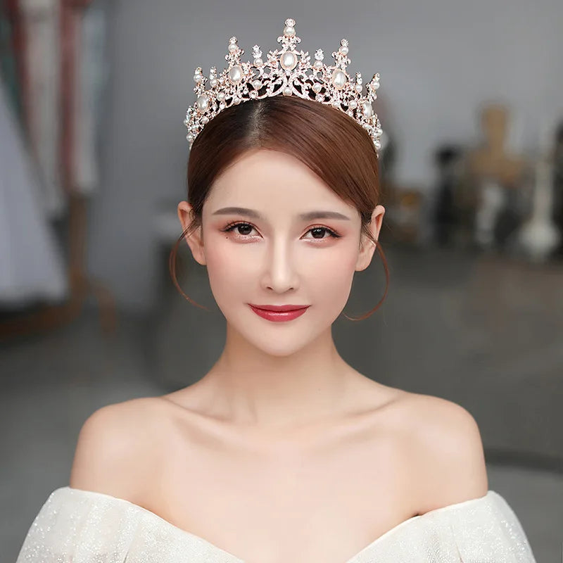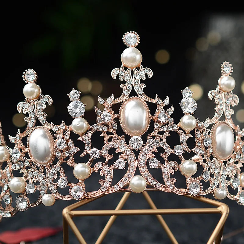 Tiara nupcial con perla de cristal y corona de diamantes de imitación, accesorio para el cabello de boda