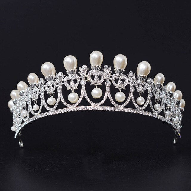 Corona real y majestuosa con una mezcla de perla y cristal.