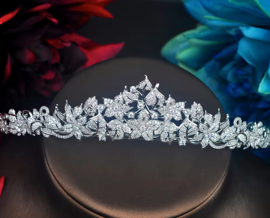 Experimenta la elegancia de nuestra pequeña tiara, con brillantes cristales de circonita cúbica y un intrincado diseño de corte fino. ¡Prepárate para quedar encantada!