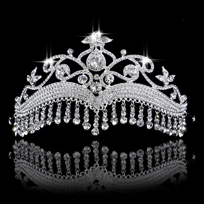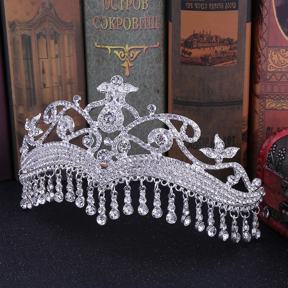 Tiara nupcial con flecos y borlas, corona de cristal, accesorio para el cabello de boda