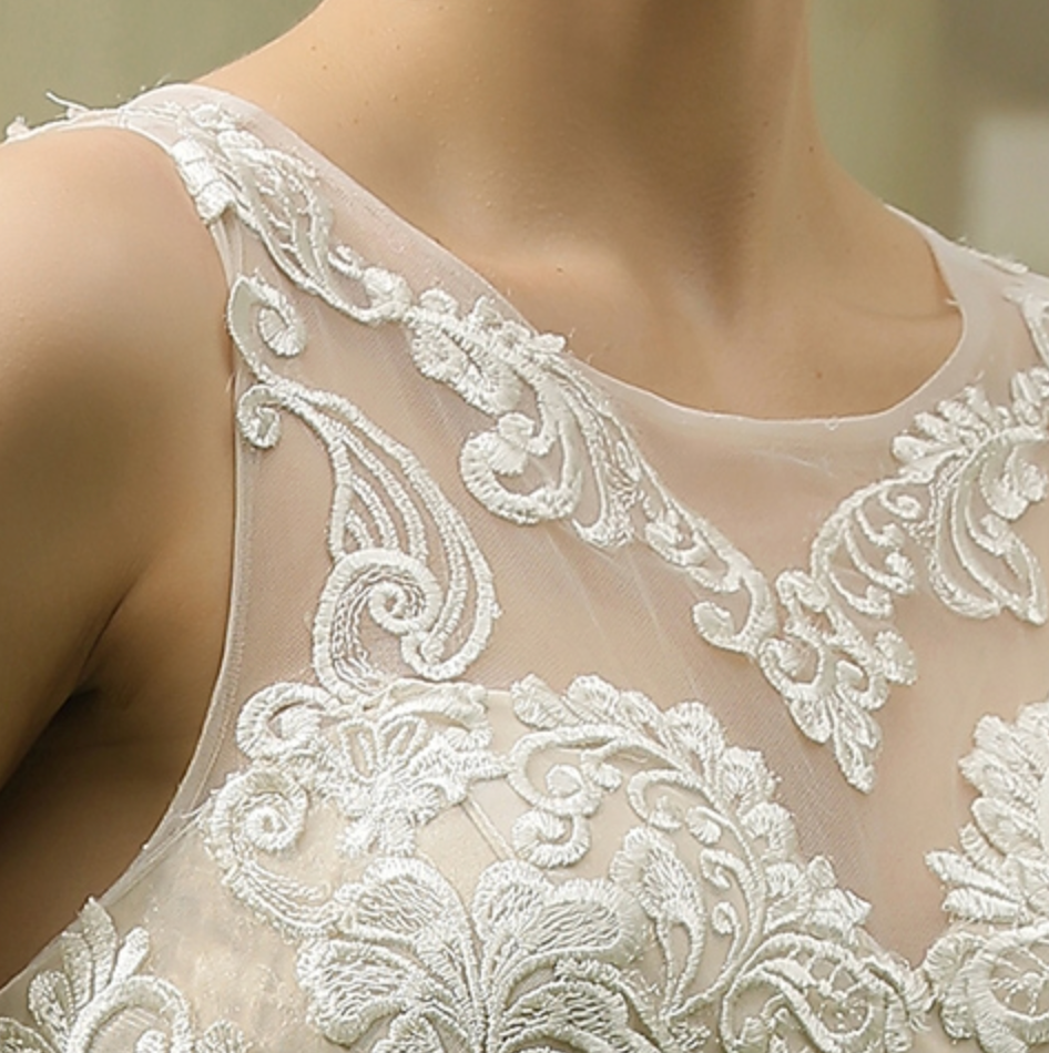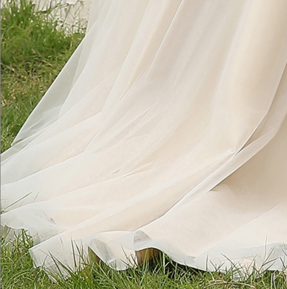 Si esta es tu primera experiencia comprando un vestido de novia, ten en cuenta que no son como los vestidos normales. Pueden ser rígidos debido a las múltiples capas, los adornos cosidos a mano que requieren una tela rígida para coserlos, y las enaguas de tul o el encaje cosidos sobre la tela del vestido también pueden ser rígidos. Los vestidos de novia están cosidos para resistir la presión y mantener todo en su lugar durante el evento. Las copas del sujetador están hechas de poliéster firme para que no se note nada a través del vestido.