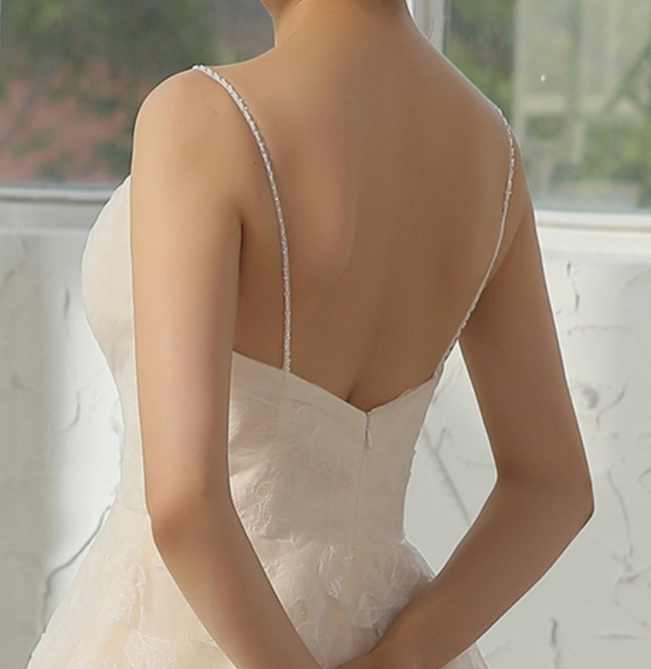 Si esta es tu primera experiencia comprando un vestido de novia, ten en cuenta que no son como los vestidos normales. Pueden ser rígidos debido a las múltiples capas, los adornos cosidos a mano que requieren una tela rígida para coserlos, y las enaguas de tul o el encaje cosidos sobre la tela del vestido también pueden ser rígidos. Los vestidos de novia están cosidos para resistir la presión y mantener todo en su lugar durante el evento. Las copas del sujetador están hechas de poliéster firme para que no se note nada a través del vestido.