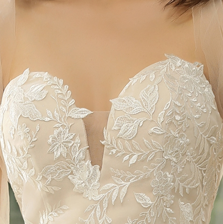 Si esta es tu primera experiencia comprando un vestido de novia, ten en cuenta que no son como los vestidos normales. Pueden ser rígidos debido a las múltiples capas, los adornos cosidos a mano que requieren una tela rígida para coserlos, y las enaguas de tul o el encaje cosidos sobre la tela del vestido también pueden ser rígidos. Los vestidos de novia están cosidos para resistir la presión y mantener todo en su lugar durante el evento. Las copas del sujetador están hechas de poliéster firme para que no se note nada a través del vestido.