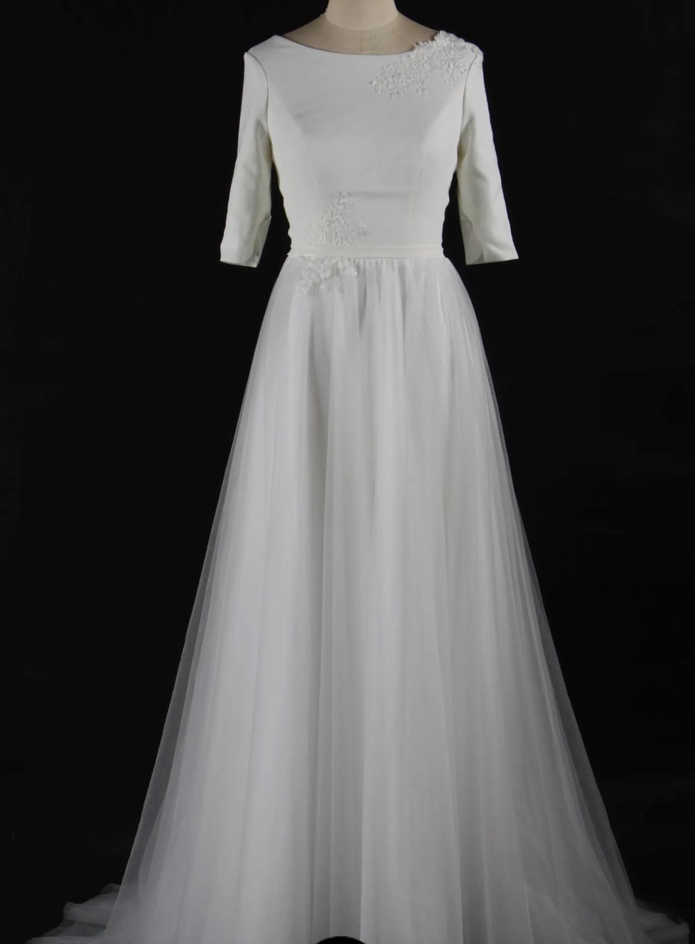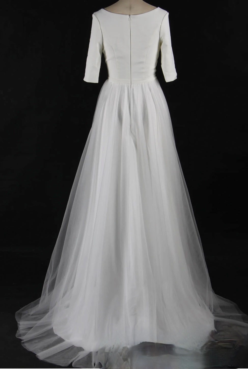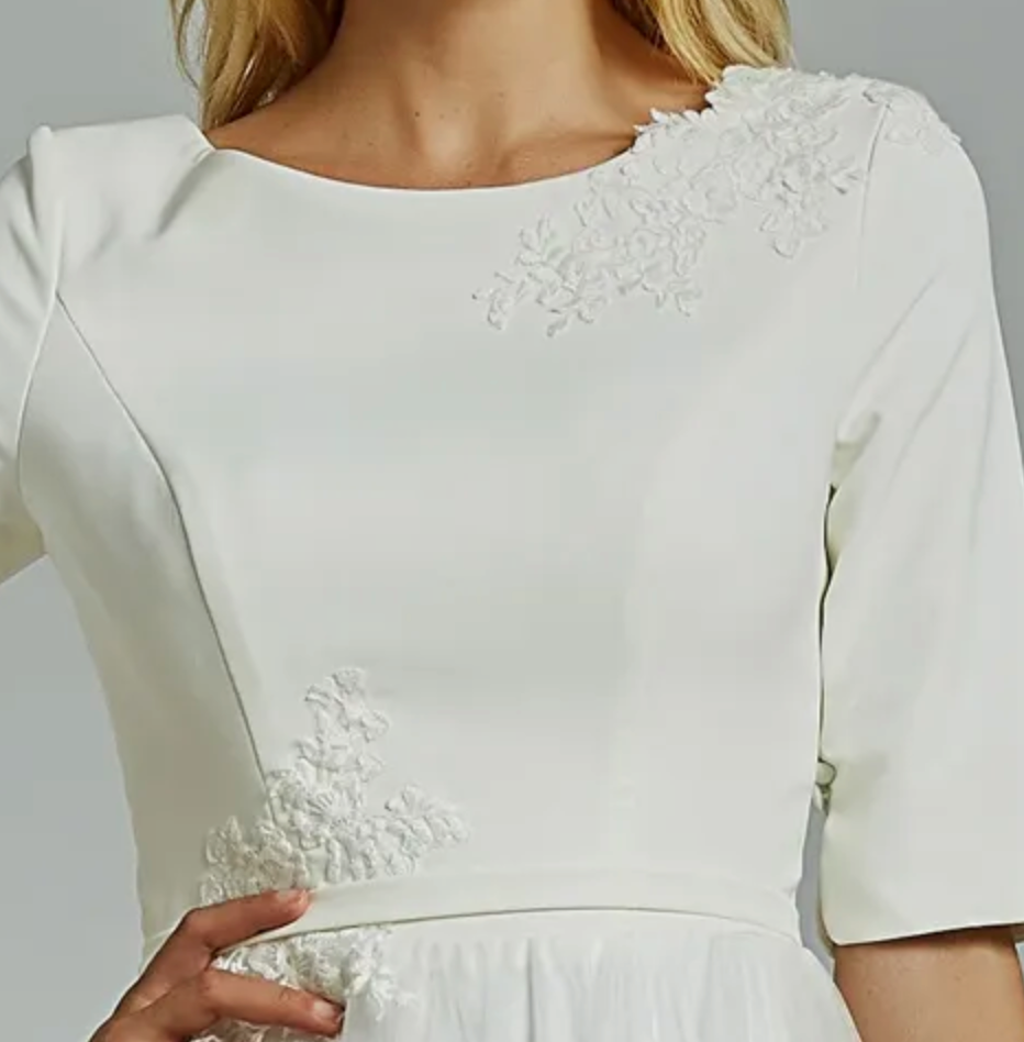 Vestido de novia sencillo estilo bohemio con media manga y corte A