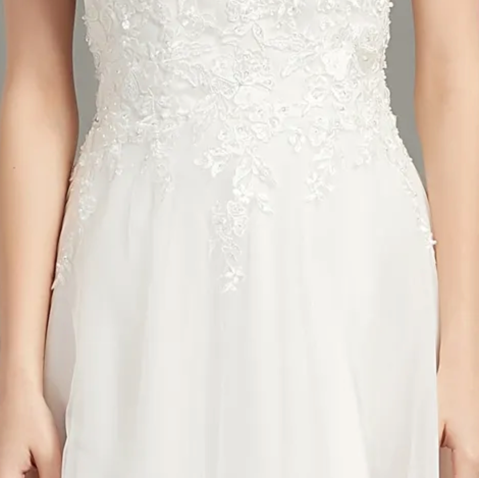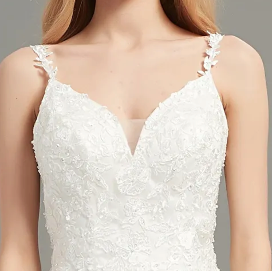 Si esta es tu primera experiencia comprando un vestido de novia, ten en cuenta que no son como los vestidos normales. Pueden ser rígidos debido a las múltiples capas, los adornos cosidos a mano que requieren una tela rígida para coserlos, y las enaguas de tul o el encaje cosidos sobre la tela del vestido también pueden ser rígidos. Los vestidos de novia están cosidos para resistir la presión y mantener todo en su lugar durante el evento. Las copas del sujetador están hechas de poliéster firme para que no se note nada a través del vestido.